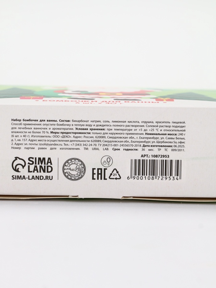 Габариты: 4 x 12 x 10,5 Страна: Россия В боксе: 30 набор Состав: См. на упаковке Материалы: см. на упаковке Фасовка: по 1 набор Индивидуальная упаковка: Плёнка Сертификат: ЕАС Набор: Да Для кого: Для женщины Форма: Шар В наборе, шт.: 6 Вес, г: 240 Вид упаковки: Подарочная коробка Символ года: Нет Тематика праздника: Новый год Адресат: Без адресата Возраст: Взрослый Составляющие набора: Бомбочка для ванн Темпер. ограничение НЕ НИЖЕ ℃: +5 Темпер. ограничение НЕ ВЫШЕ ℃: +25 Возраст: Для взрослых Особенности: Без особенностей Комментарии к товару