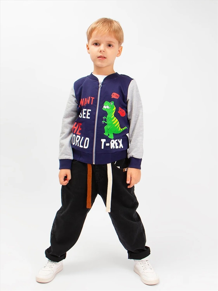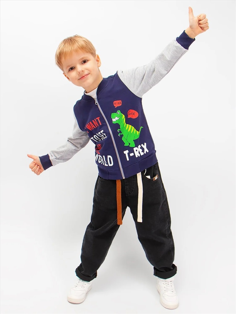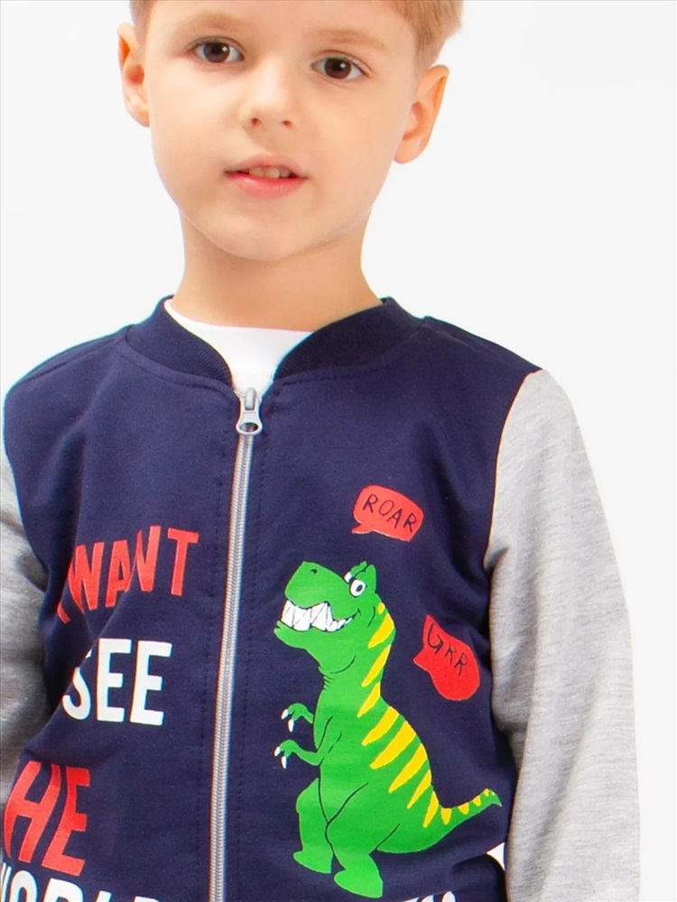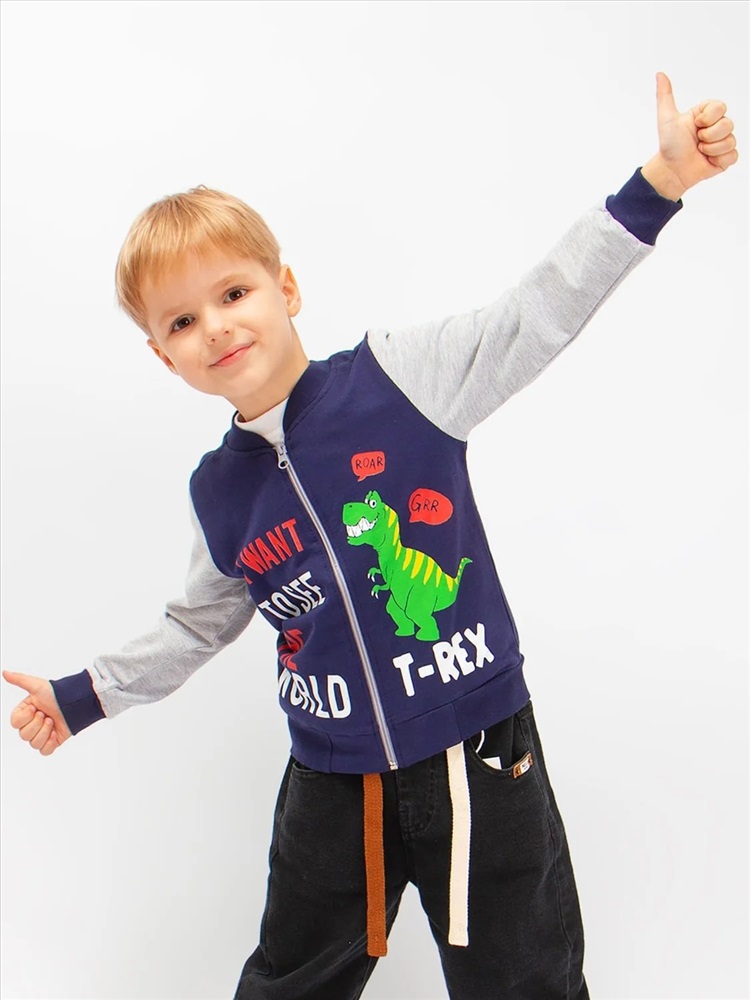 Модный бомбер, с оригинальным принтом, для мальчика. На рукавах и по низу изделия широкие эластичные манжеты. Великолепный выбор для стильного образа на каждый день. Ткань - футер-петля.