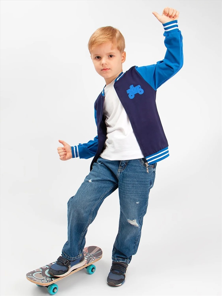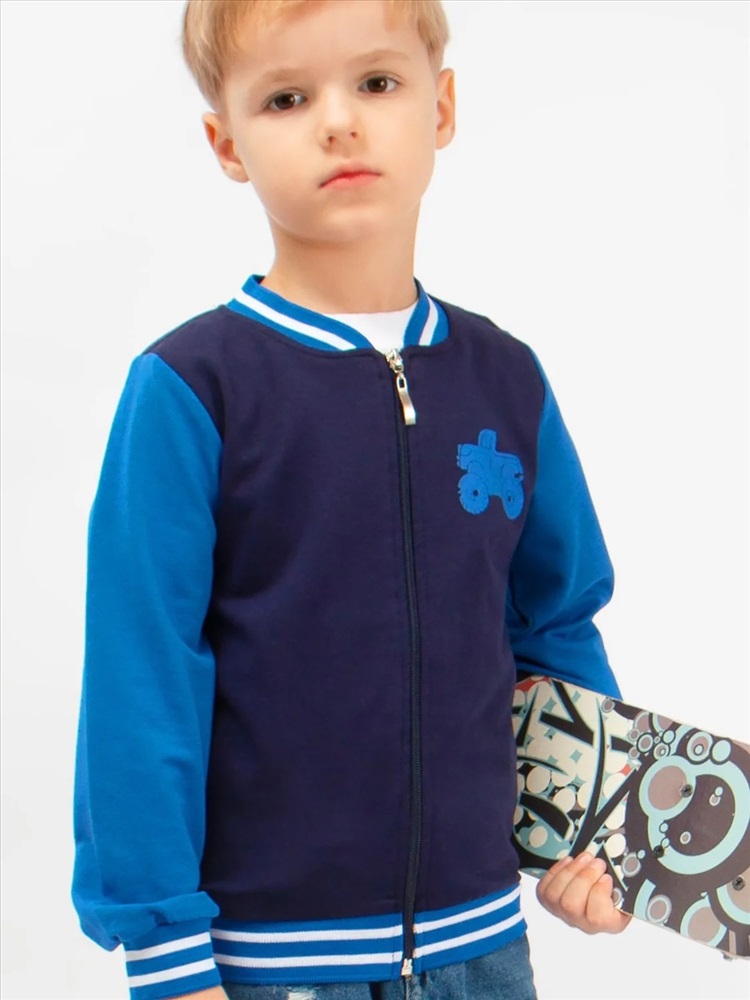 Модный бомбер, с оригинальным принтом, для мальчика. На рукавах и по низу изделия широкие эластичные манжеты. Великолепный выбор для стильного образа на каждый день. Ткань - футер-петля.