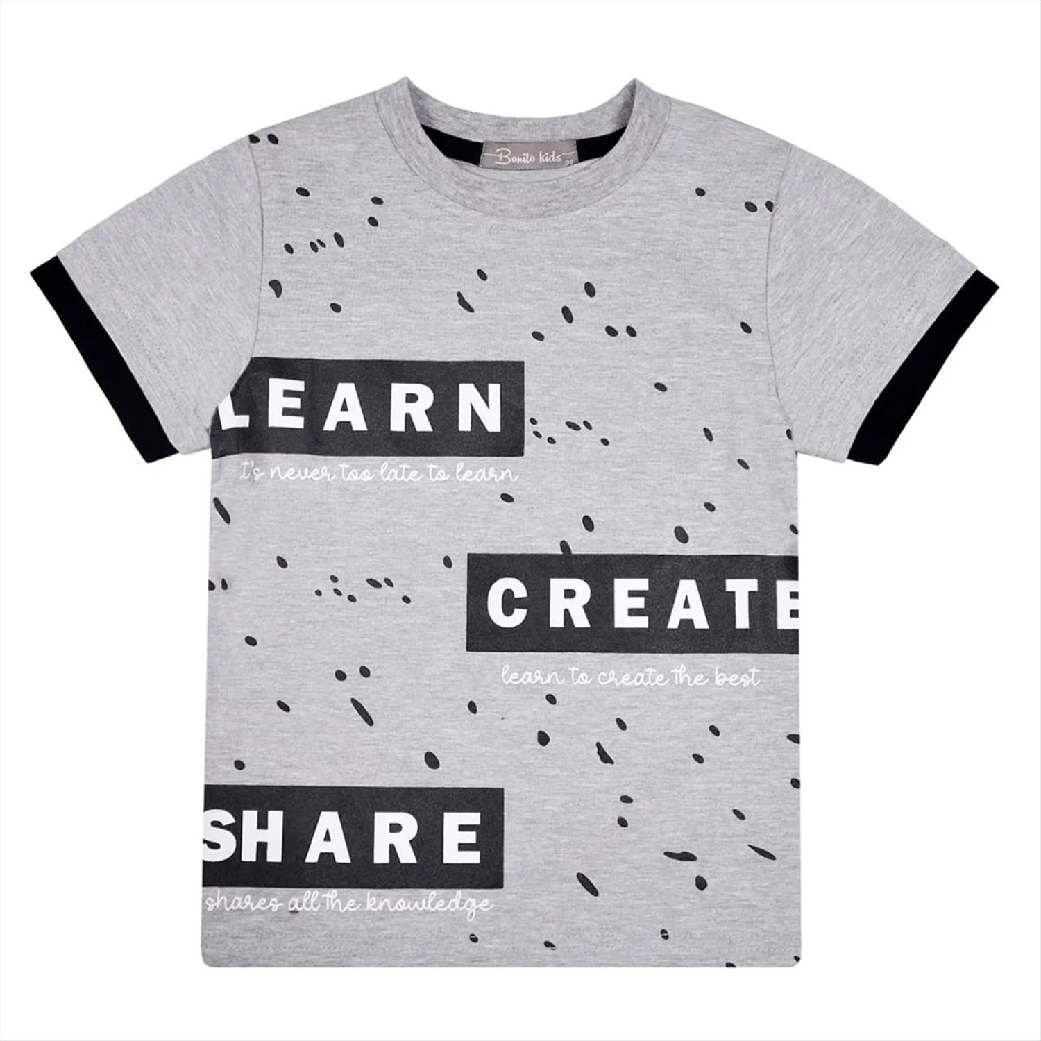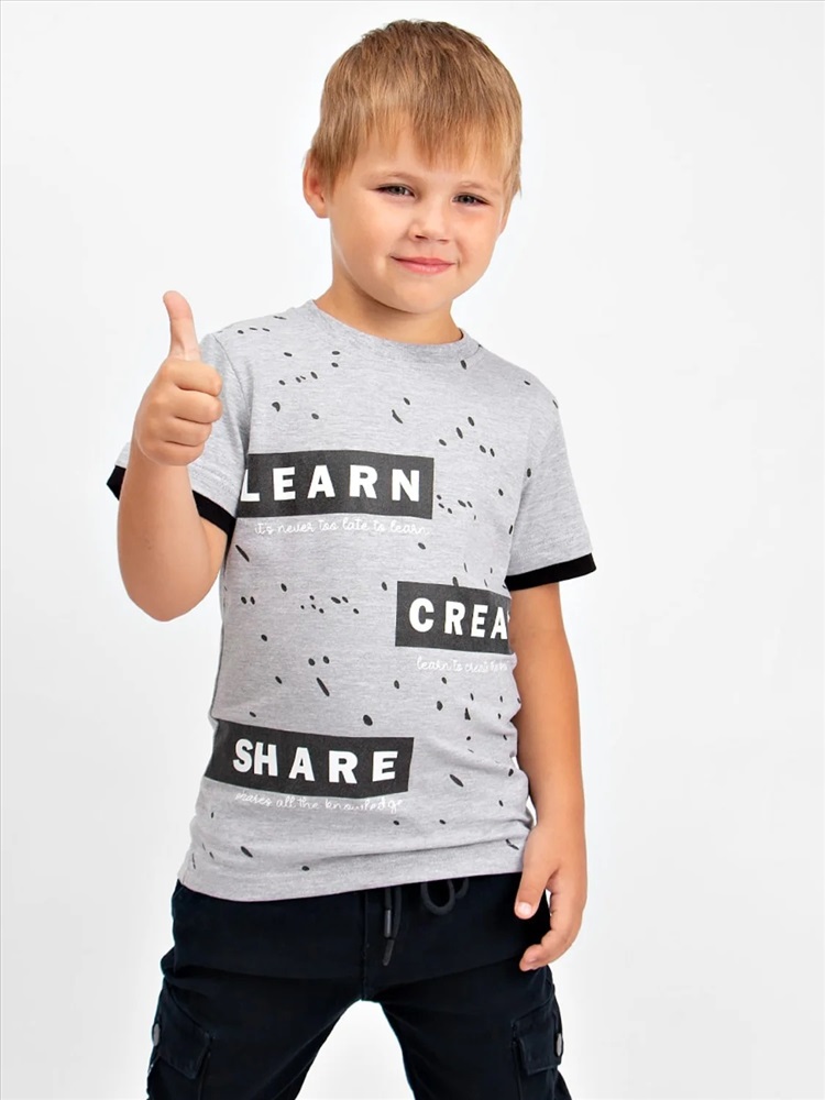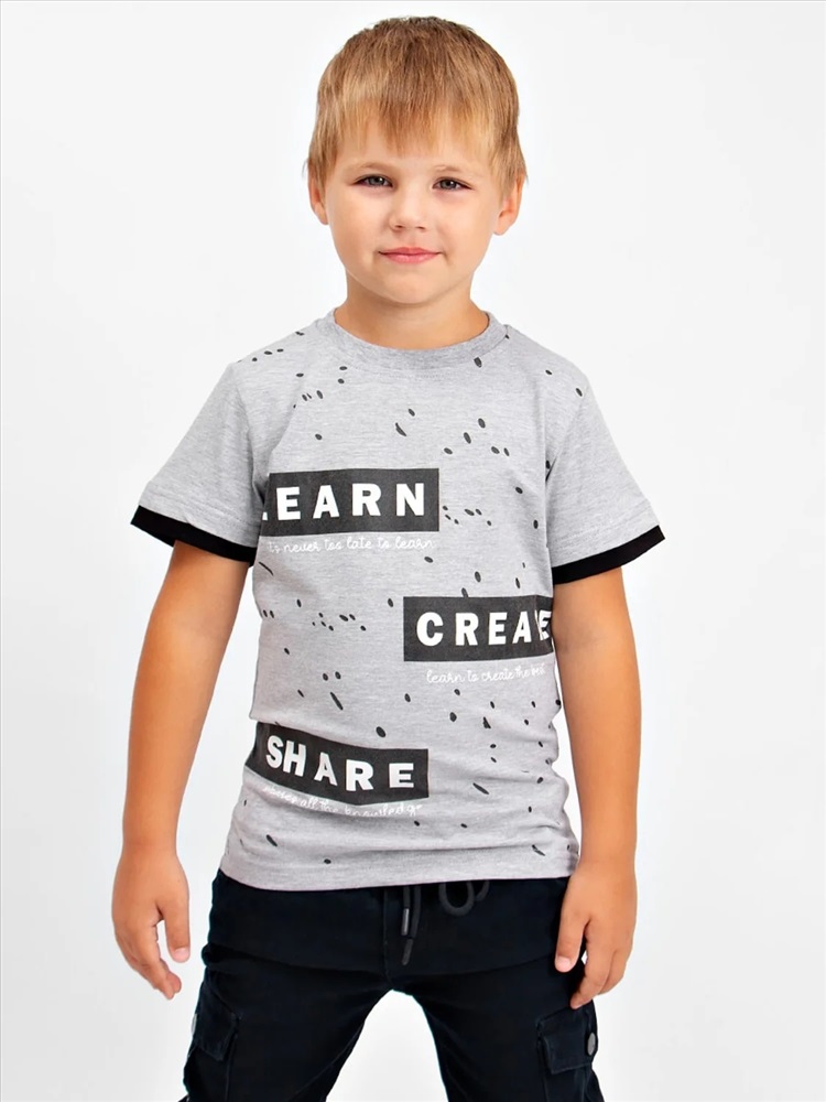 Комфортная футболка свободного силуэта для мальчика. Ткань-кулирка отлично впитывает влагу и пропускает воздух. Прекрасный выбор на каждый день для дома, прогулки или детского сада.