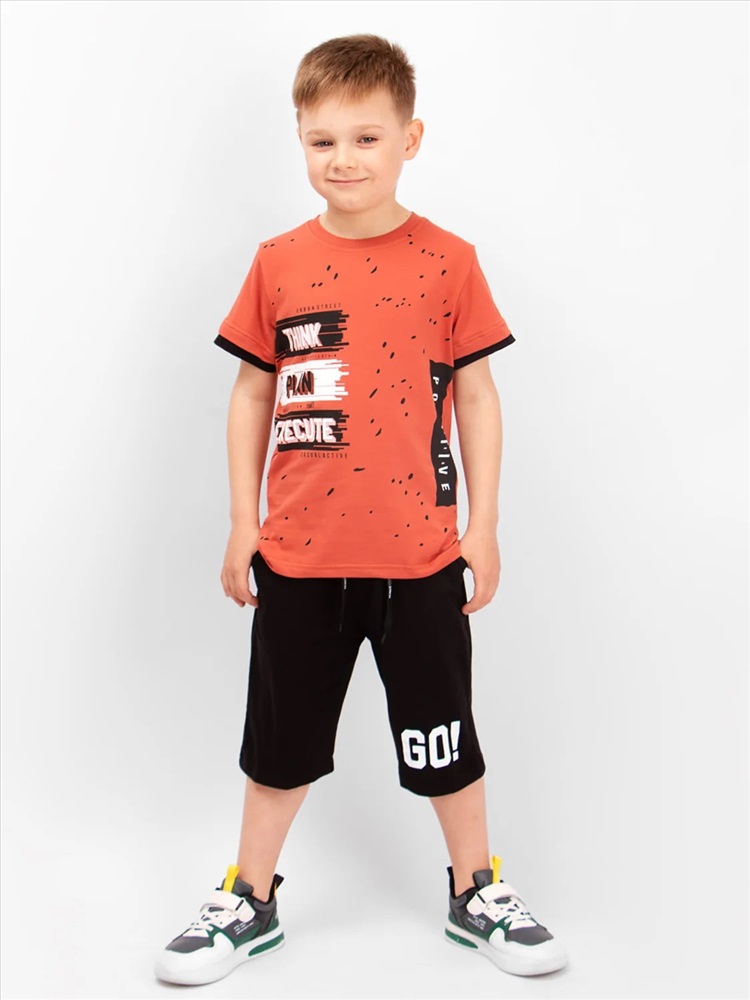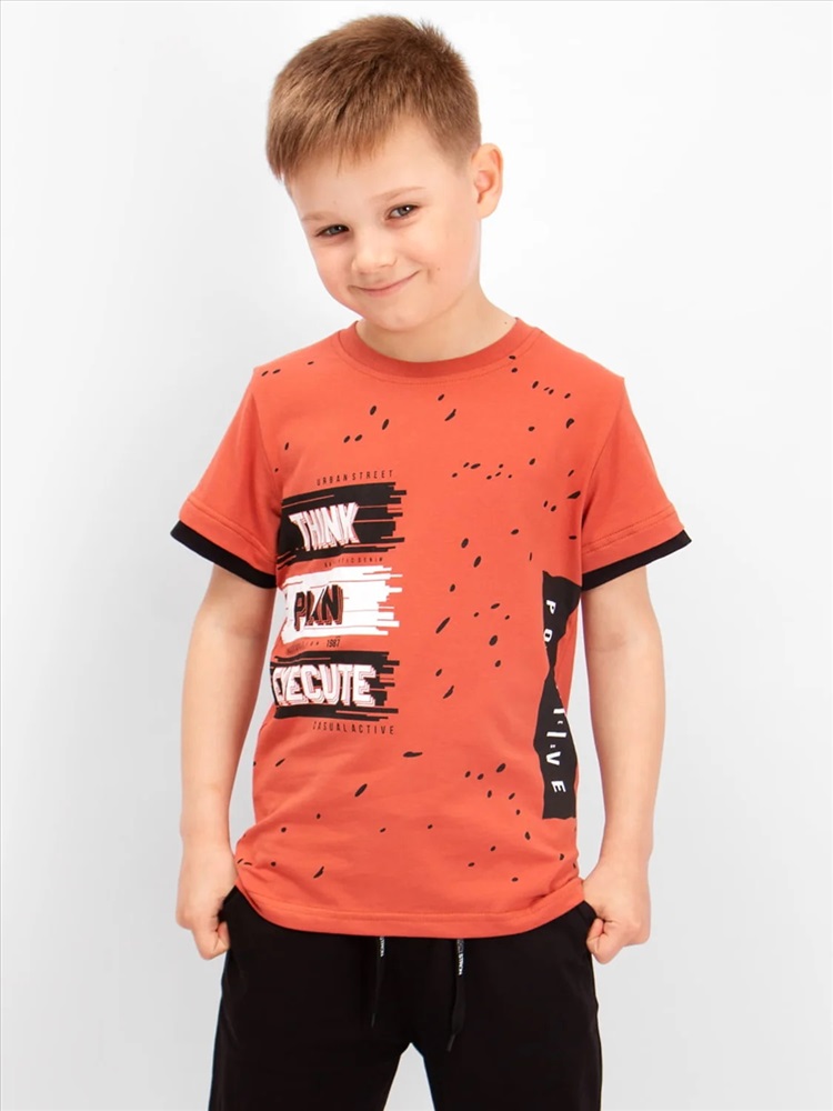 Комфортная футболка свободного силуэта для мальчика. Ткань-кулирка отлично впитывает влагу и пропускает воздух. Прекрасный выбор на каждый день для дома, прогулки или детского сада.