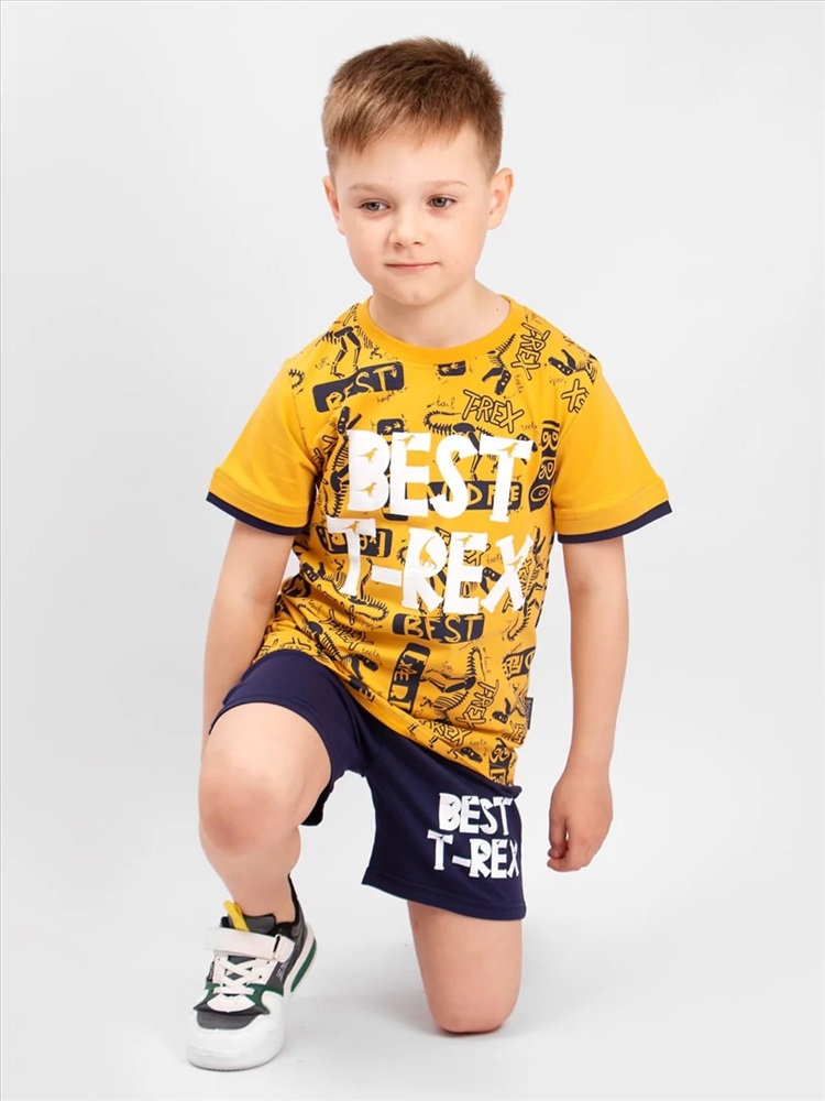 Летний костюм для мальчика. Мягкая поверхность материала из хлопка приятная к телу ребенка. Ткань не доставит забот при стирке, обладает воздухопроницаемыми качествами. У модели достаточно широкая горловина, вещь легко надеть и снять. Такой универсальный костюм идеально вольется в летний гардероб, а яркие расцветки и оригинальные принты понравятся каждому мальчишке.