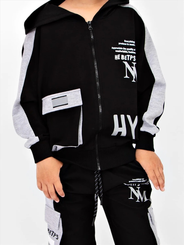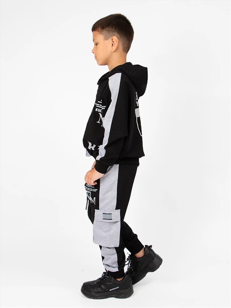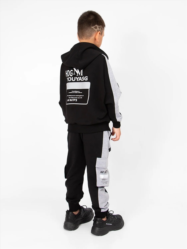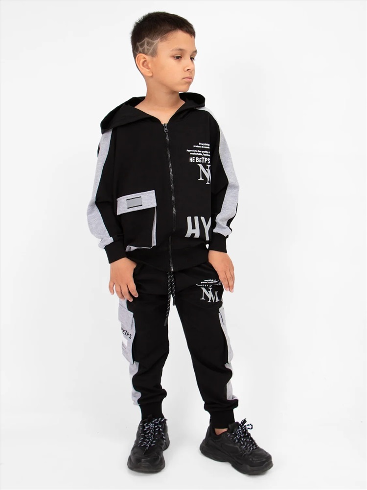 Кофта на молнии, с капюшоном. Брюки на манжете, по бокам, на уровне колена, накладные карманы. Мягкий трикотаж футер хорошо пропускает воздух, обладает гипоаллергенными свойствами, не теряет формы.