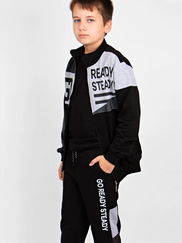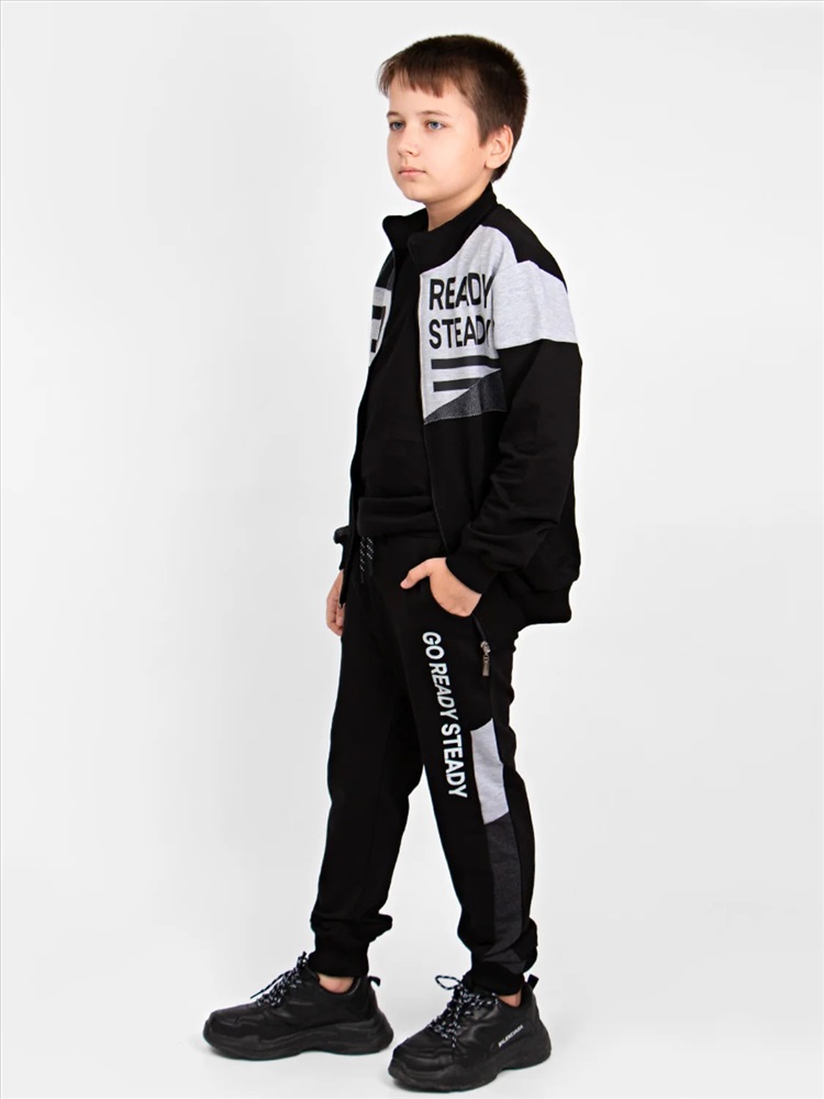 Спортивный костюм для мальчика. Лёгкое хлопковое полотно футер 2-х нитка отлично подходит для занятий спортом, обеспечивая комфорт и гигиеничность. Модный принт придется по вкусу каждому мальчишке.