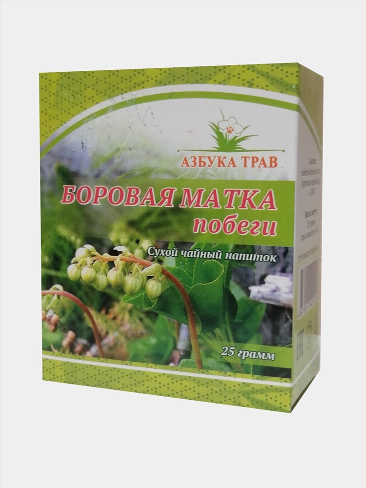 Применяется при лечении гинекологических заболеваний фибромы матки, миомы, бесплодия, маточных кровотечений, токсикоза, нарушении менструального цикла, спаечных процессов, непроходимости и воспалении труб, болезнях печени, пиелонефрите, цистите, мочекаменной болезни, подагре, гастрите, хроническом гепатите, холецистите, желчно-каменной болезни, различных внутренних кровотечениях,радикулите, грыже, воспалении предстательной железы, ревматизме, при отеках — вследствие болезни сердца, почек, при сахарном диабете, для промывания ран и язв. При остром вагините — спринцевание. При эпилепсии лечение 1,5-2 года. Противопоказания Индивидуальная непереносимость, беременность, лактация. Способ применения 1) 50г сырья залить 0,5 л 40% спирта, дать настояться 7 дней в темном месте. Принимать по 30-35 капель 3-4 раза в день. Курс лечения от 2-3 недель до нескольких месяцев в зависимости от тяжести заболевания. 2) 10г сырья помещают в эмалированную посуду, заливают одним стаканом горячей воды, закрывают крышкой и нагревают на водяной бане 15 минут при частом помешивании. Охлаждают 45 минут при комнатной температуре, процеживают. Оставшееся сырье отжимают. Объем полученного настоя доводят кипяченой водой до 200 мл. Принимают по 1/4 стакана 3-4 раза в день. Перед употреблением проконсультируйтесь с лечащим врачом. Состав Побеги боровой матки (ортилия однобокая, бокоцветка, боровая трава, боровинка, винная трава, заячья соль, грушовник, лесная грушка, зимозелёнка) - 100% Комплектация 25 грамм побегов боровой матки в индивидуальной упаковке