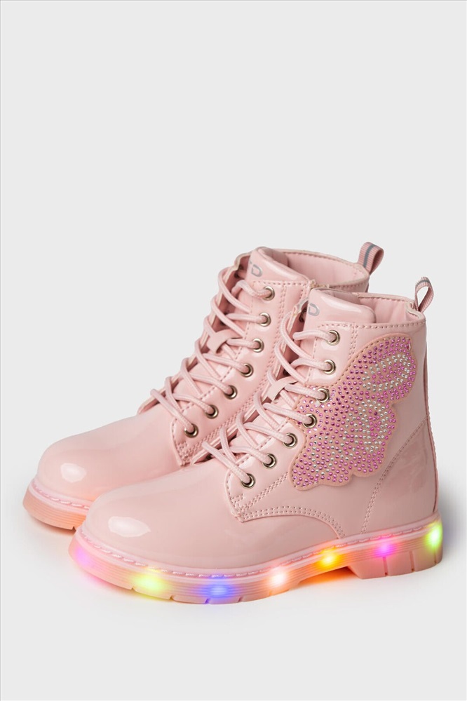ID товара: 1239722 Состав: 100% искусственная кожа Сезон: Весна/Лето Трендовые розовые детские ботинки для девочки на шнурках. Изнутри имеется молния. Ботинки выполнены из лаковой искусственной кожи. Сбоку ботинки декорированы деталью в виде крыла бабочки, украшенной стразами и заклепками. В обуви стоит мягкая флисовая подкладка. Флисовая стелька вынимается для просушки. Формоустойчивый задник поддерживает стопу в правильном положении. Эргономичная форма колодки обеспечивает правильное формирование стопы ребенка. Подошва из ТПР не скользит и устойчива к истиранию. Подошва с мигающим элементом flashlight. Комментарии к товару