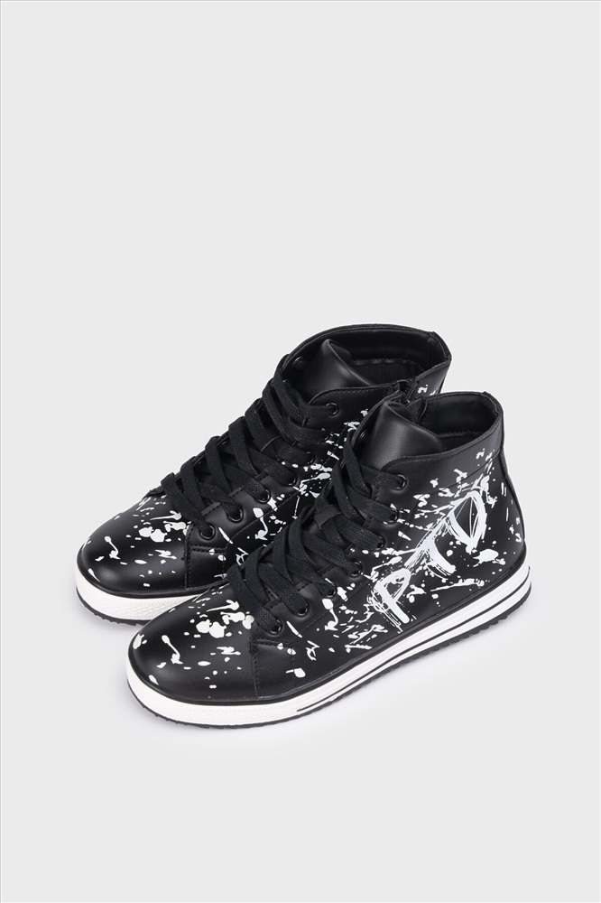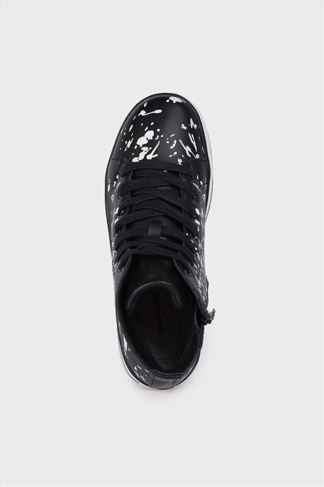 Кеды для девочки подростка. Высокие кеды из искусственной кожи с эффектом забрызгивания краской. Модель имеет шнурки, с помощью которых регулируется подъем, и изнутри молнию для удобства обувания. В носочной части обуви стоит текстильная подкладка c высоким содержанием хлопка 80%, которая обладает высокой гигроскопичностью. В пяточной части обуви текстильная подкладка обладает хорошей износостойкостью. Профилированная стелька из свиной кожи с анатомической формой подсводника обеспечивает правильную нагрузку на стопу. Двухсоставная подошва из ТПР очень гибкая, не скользит,устойчива к истиранию. Формоустойчивый задник поддерживает стопу в правильном положении. Эргономичная форма колодки обеспечивает правильное формирование стопы ребенка.