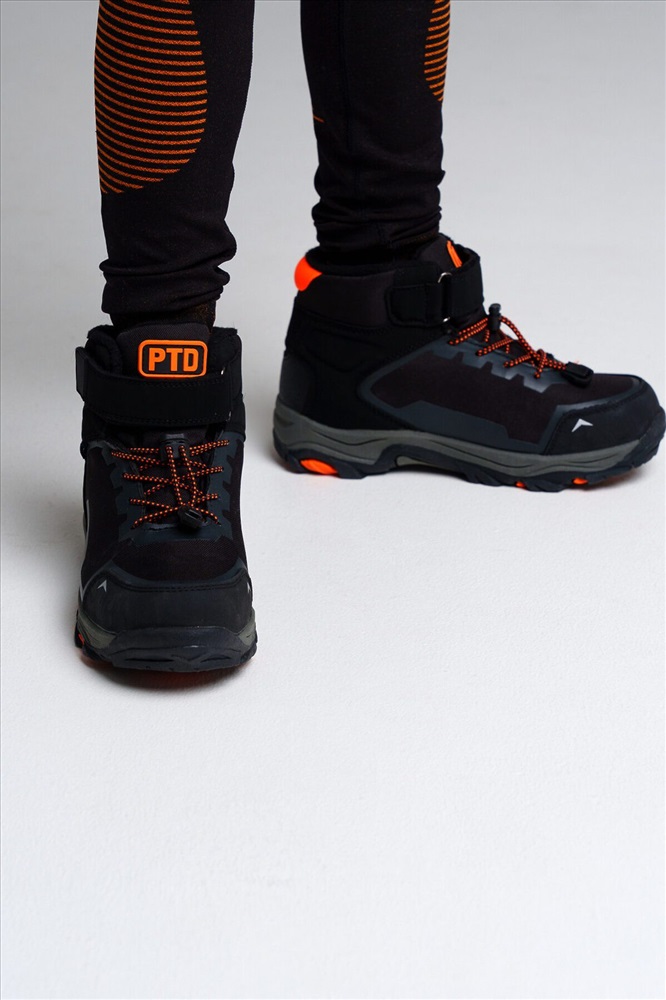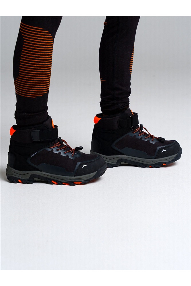 Конструкция верха изготовлена с использованием мембранных технологий. Усиленная защита носка и пятки специальными материалами. Подкладка и стелька выполнены из шерстяного меха 80%. Трехслойная стелька с фольгой, которая обеспечивает сохранение тепла в течение длительного времени. Формоустойчивый задник поддерживает стопу в правильном положении. Подошва имеет противоскользящий протектор. Удобная застежка-липучка и шнурок-утяжка. Рекомендованный температурный режим от 0°С до -20°С.
