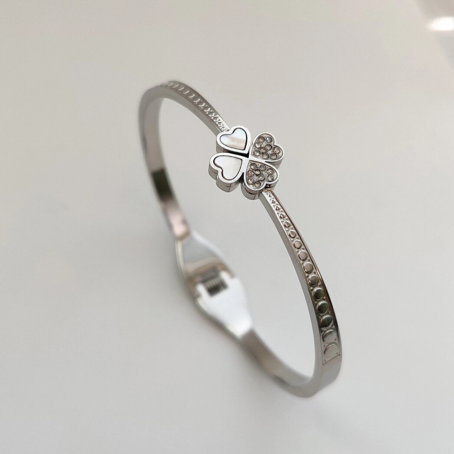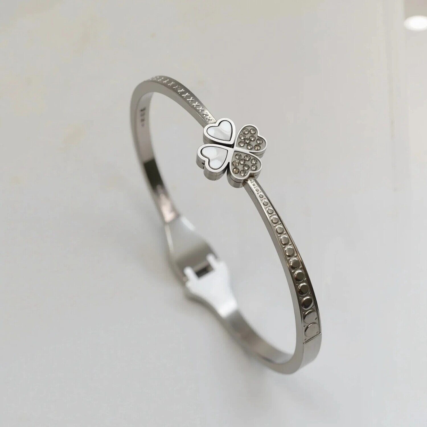 Вставка: Цирконы Материал изделия: сталь Размер: диаметр браслета 6 см Браслет изготовлен из стали Наши прямые заказы на ювелирные фабрики позволяют установить для вас самые низкие цены в России на наши самые лучшие качественные украшения.