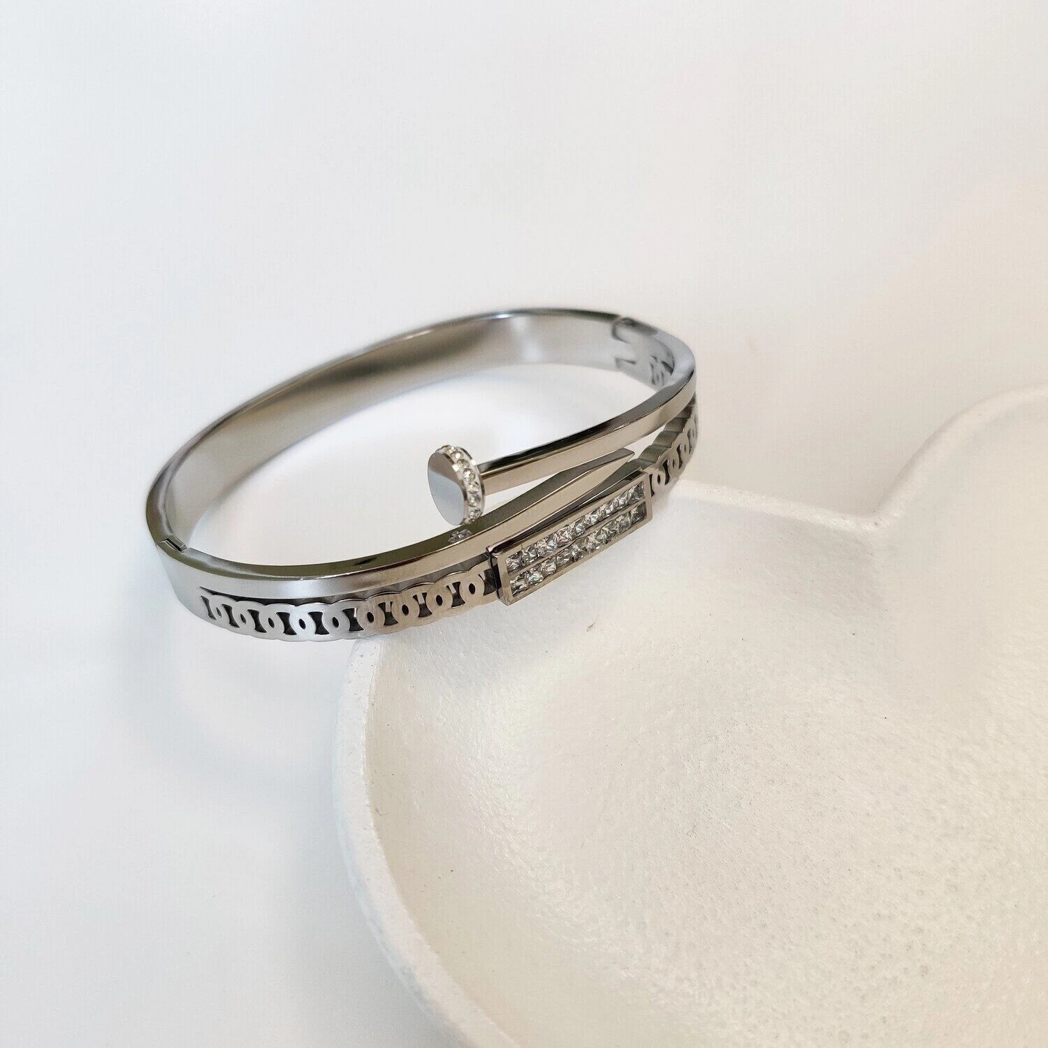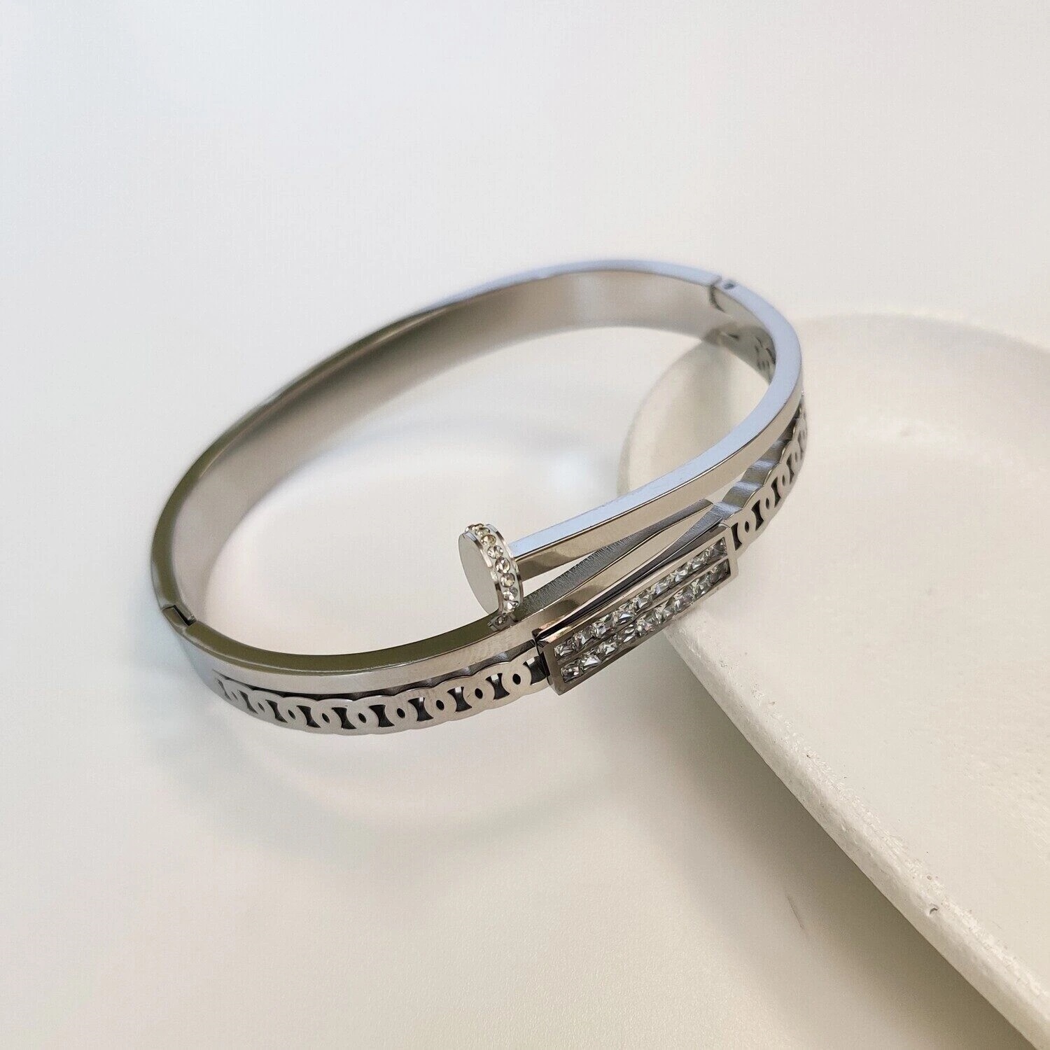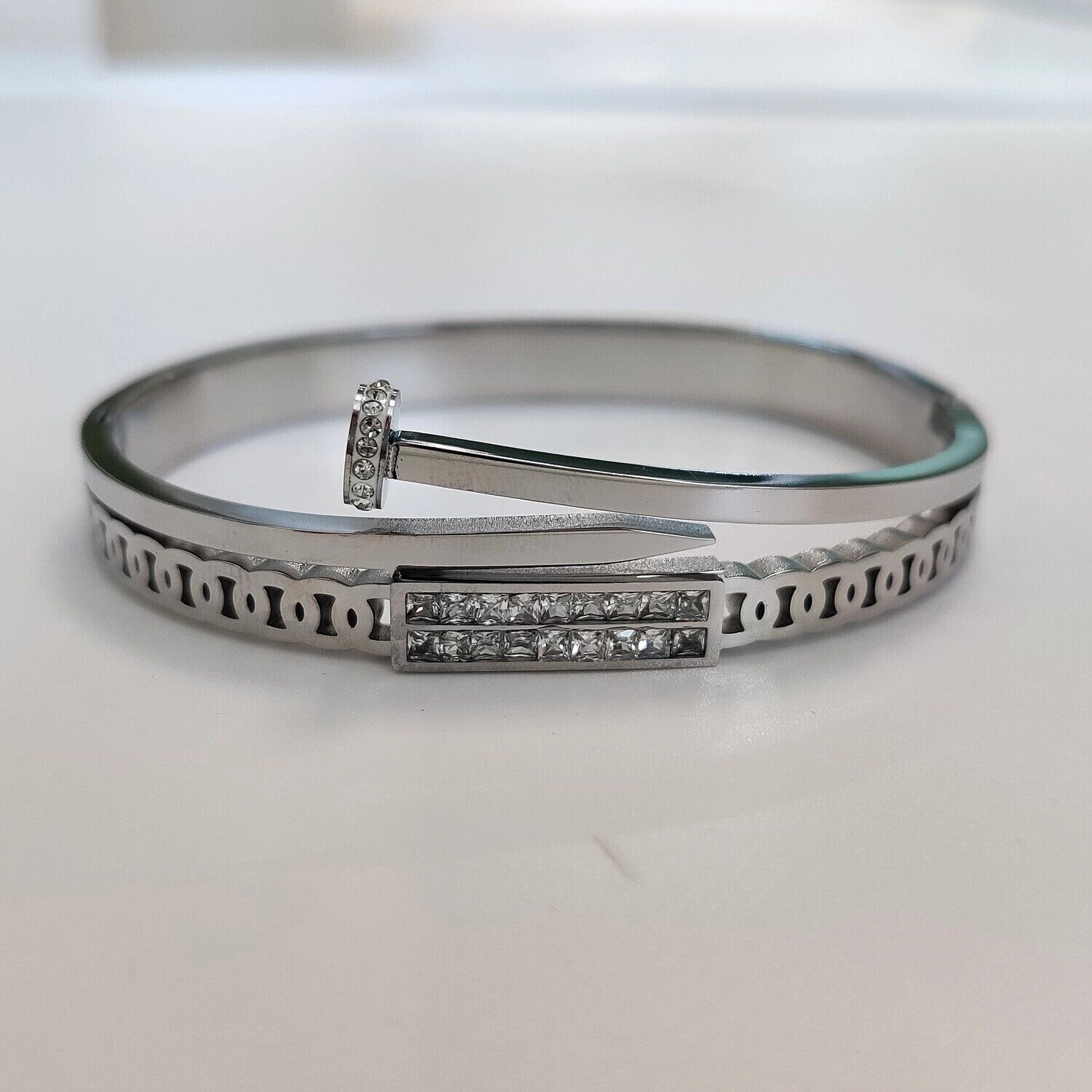 Вставка: Цирконы Материал изделия: сталь Размер: диаметр браслета 6 см Браслет изготовлен из стали Наши прямые заказы на ювелирные фабрики позволяют установить для вас самые низкие цены в России на наши самые лучшие качественные украшения.