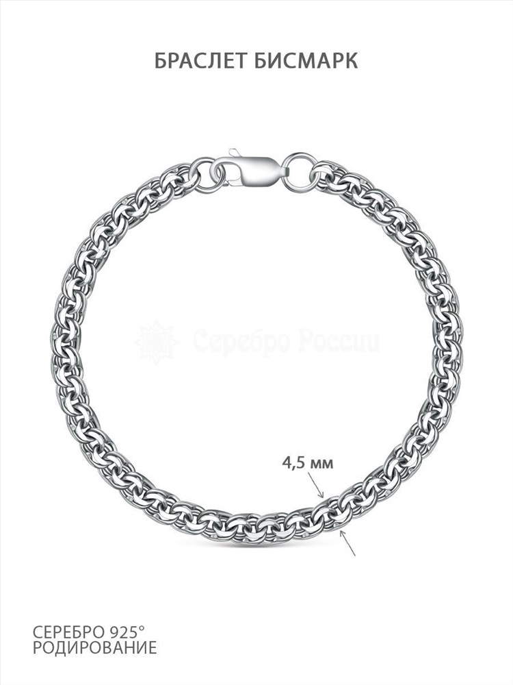 Браслет из родированного серебра с алмазной огранкой - Бисмарк 925 пробы 2-003ра