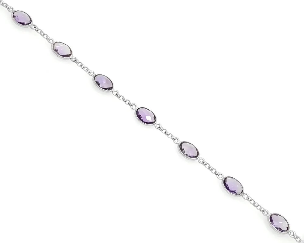 Вставка: Аметист Дизайн: Овал Цвет камня: Фиолетовый Производство: Индия Размер камня: 10 мм * 8 мм Ячейка: 3.H.04.01 Размер цепи: 17-20 Количество: 18 Браслет, арт.19093 Серебро Серебро 925, р. 18-21, 3,5 гр., аметист Комментарии к товару