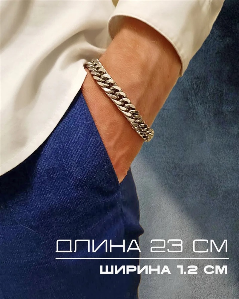 Стильный браслет из стали 316L имеет высокую износостойкость, не окисляется, не темнеет, не вызывает аллергии. Размер браслета можно регулировать убрав одно звено. Длина 24 см. Ширина браслета 1.4 мм.