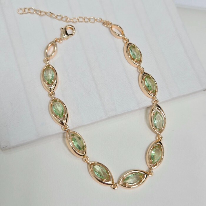 Браслет на руку ювелирная бижутерия коллекция "Дубай", вставка: фианиты, цвет: бледно-зеленый, арт.414.088