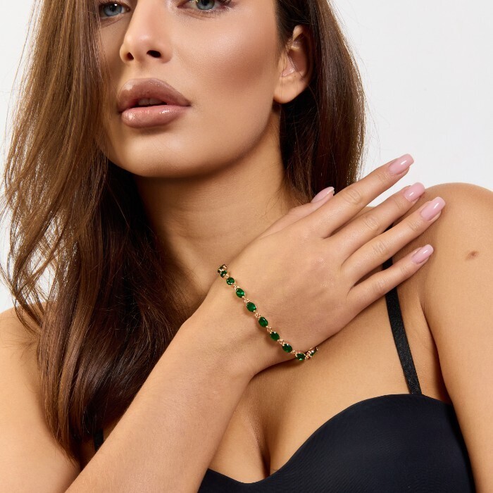 Браслет на руку ювелирная бижутерия коллекция "Дубай", вставка: фианиты, цвет: изумрудный, арт.414.078