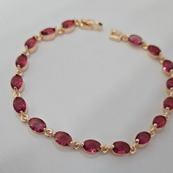 Браслет на руку ювелирная бижутерия коллекция "Дубай", вставка: фианиты, цвет: рубиновый, арт.414.087