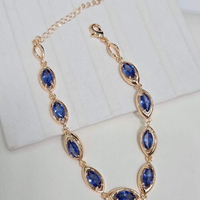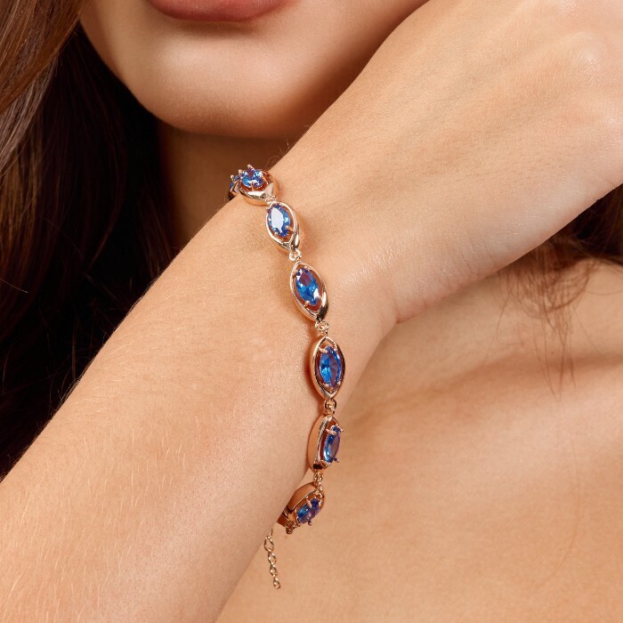 Браслет на руку ювелирная бижутерия коллекция "Дубай", вставка: фианиты, цвет: синий, арт.414.095