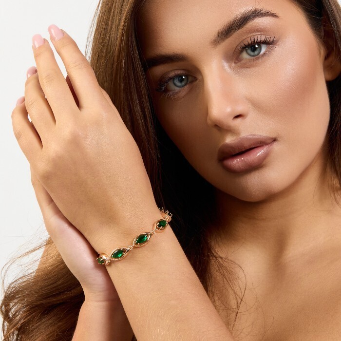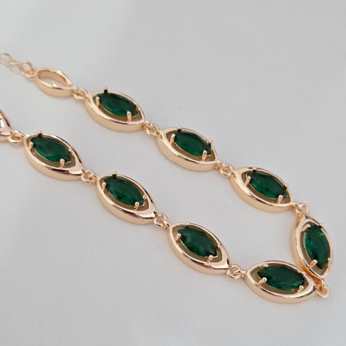 Браслет на руку ювелирная бижутерия коллекция "Дубай", вставка: фианиты, цвет: зеленый, арт.414.091