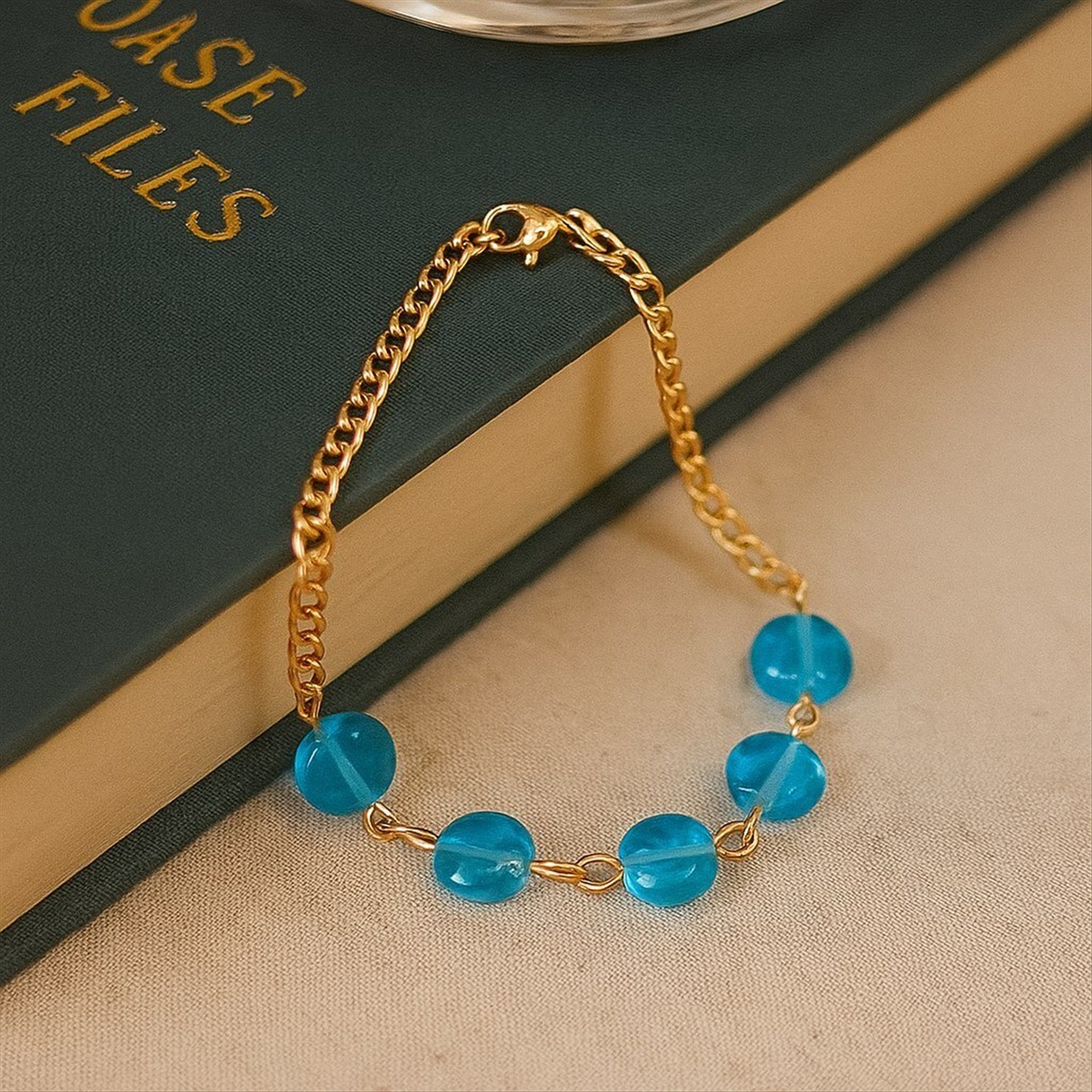 Длина браслета: 17 см, ширина цепочки: 0,3 см, размер камней: 0,8*0,8 см. Замок: карабин. Вес: 5 гр.