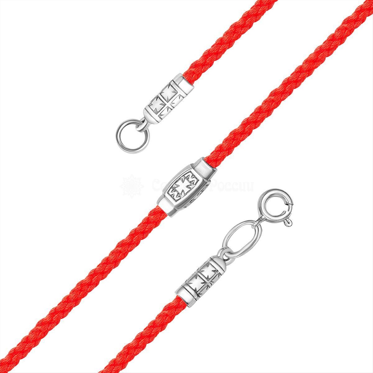 Браслет религиозный из родированного серебра на текстильном шнурке 925 пробы 47-011 Браслет