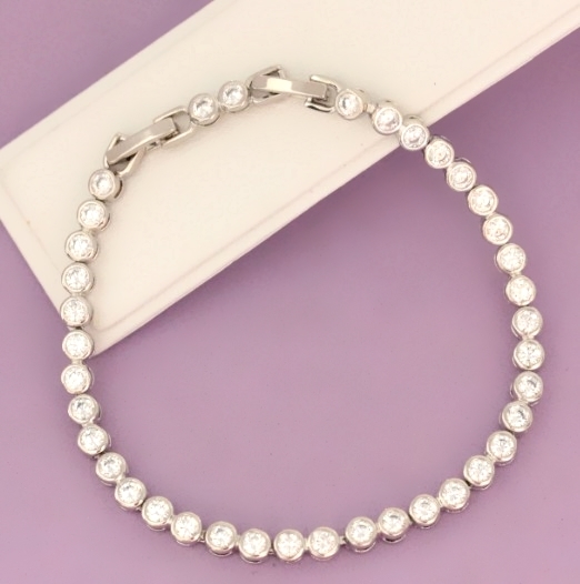 Браслет покрытие родий. Материал: бижутерный сплав. Вставки: фианиты. Ширина: 3мм