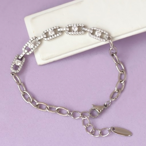 Браслет покрытие родий. Материал: бижутерный сплав. Покрытие: родий. Вставки: фианиты.