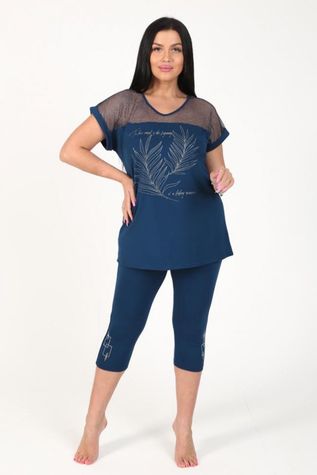 Бриджи облегающего силуэта из вискозы, длина чуть ниже колена, пояс на резинке, удобная высокая посадка. По переду в нижней части расположен декоративный узор из страз. Изготовлена модель из стрейчевого, комфортного, износостойкого трикотажного полотна в трёх расцветках на Ваш выбор.