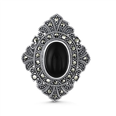 Брошь-кулон из чернёного серебра с натуральным ониксом и марказитами HB0547-ON