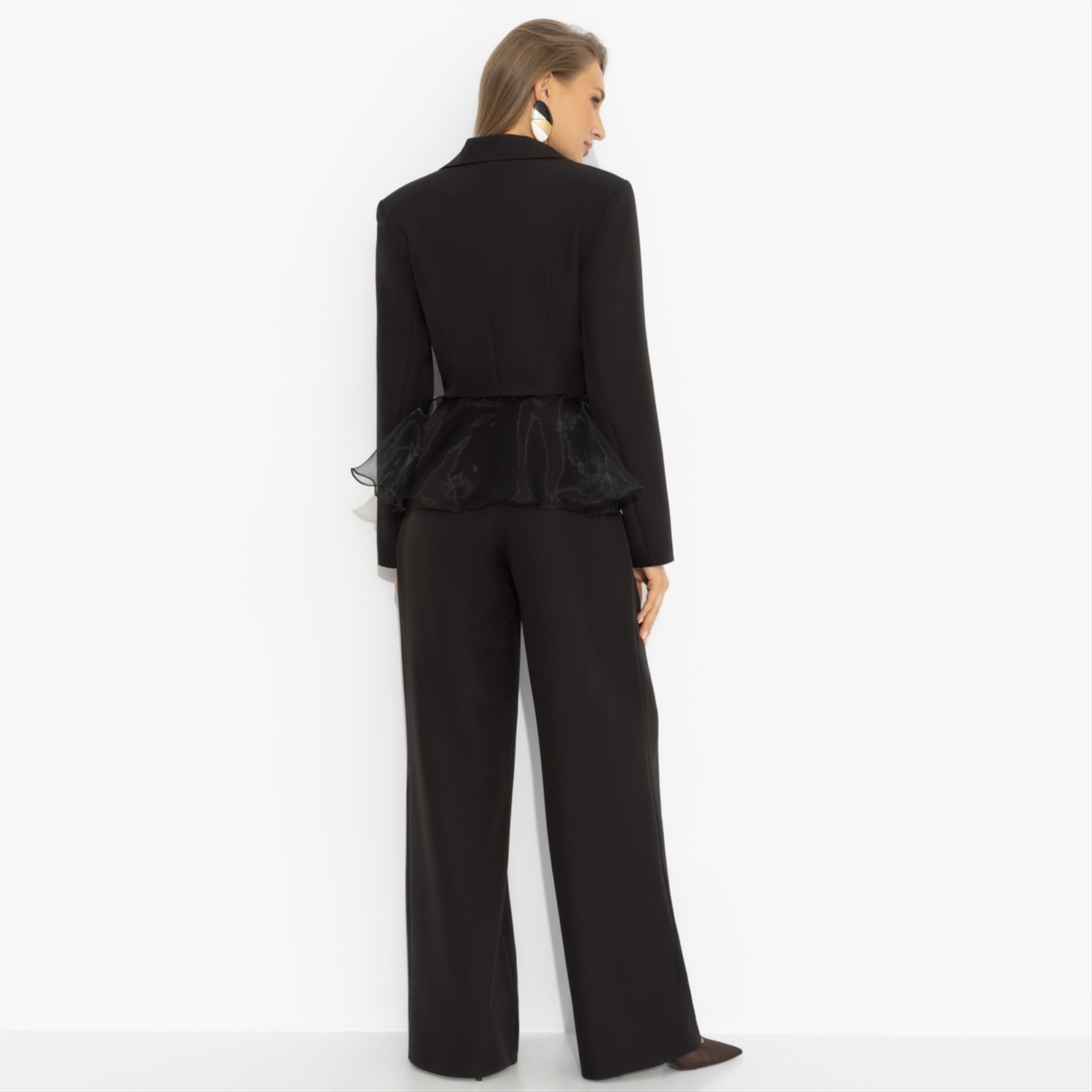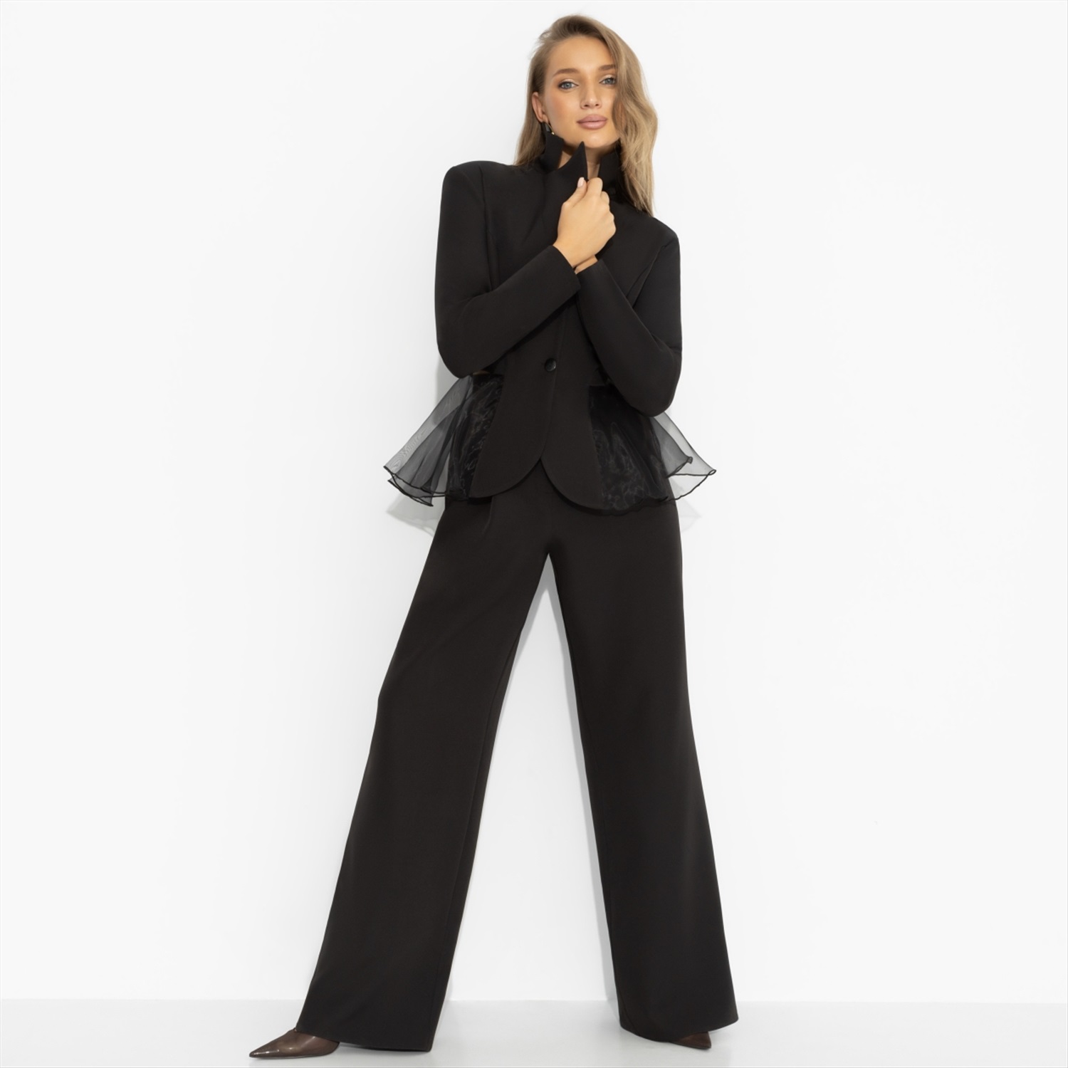 Коллеги из соседнего отдела с утра не в настроении? Скорее всего, у них просто неудобные брюки. Чего не скажешь о тебе. Чёткий жакет с акцентом на талию, идеальная посадка и свободные, не ограничивающие движения брюки создают баланс силы и комфорта. Ты спокойна, собрана и знаешь – решение в твою пользу принято единогласно ещё до первого голосования.