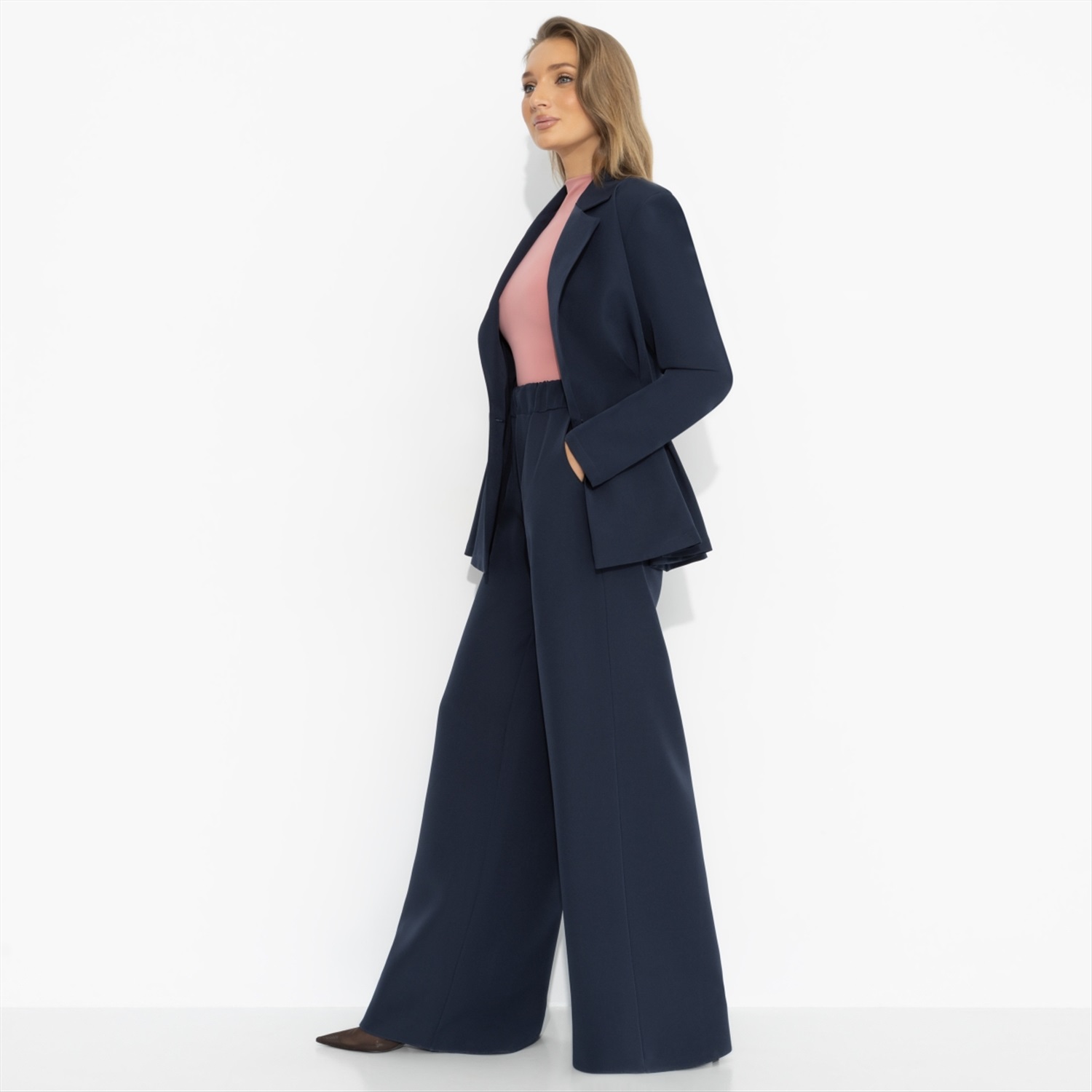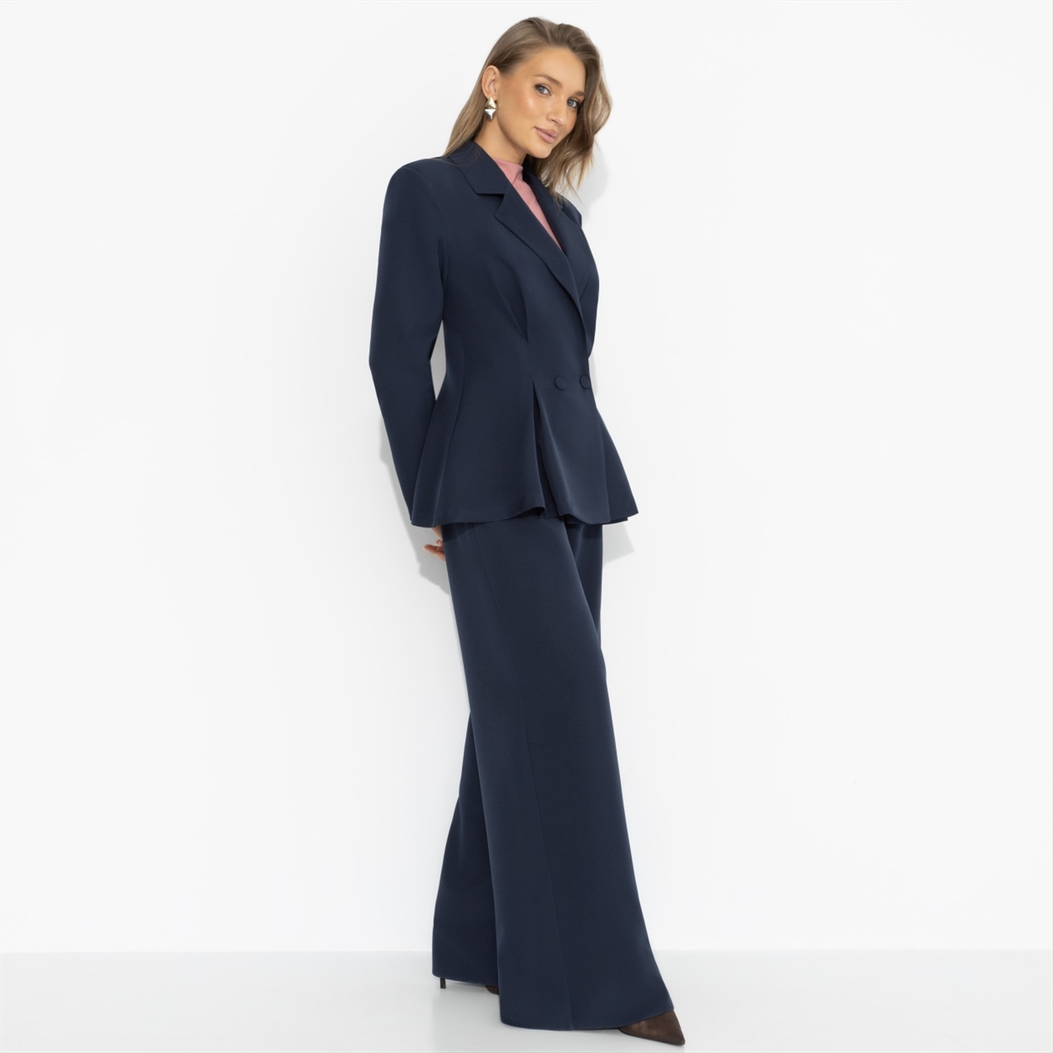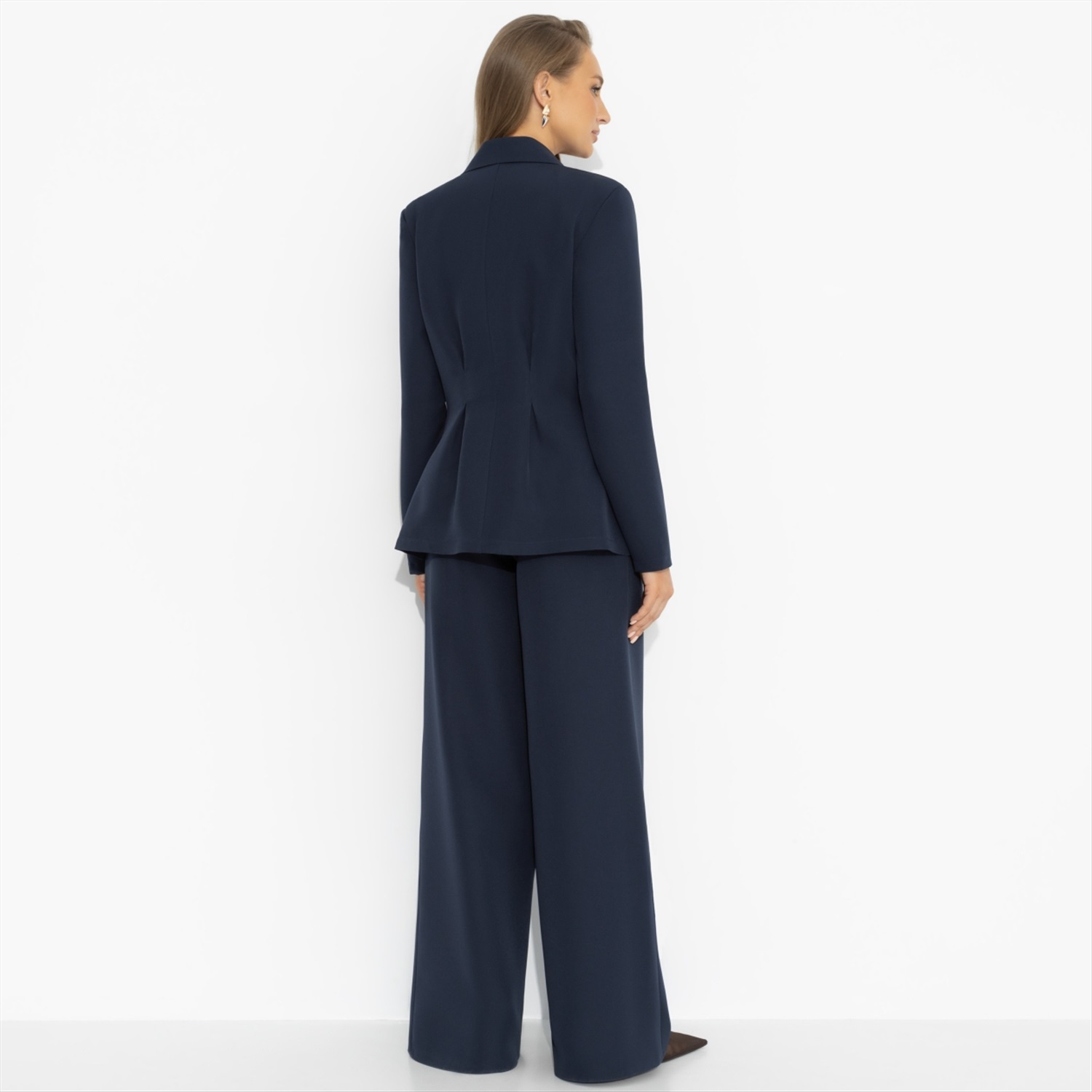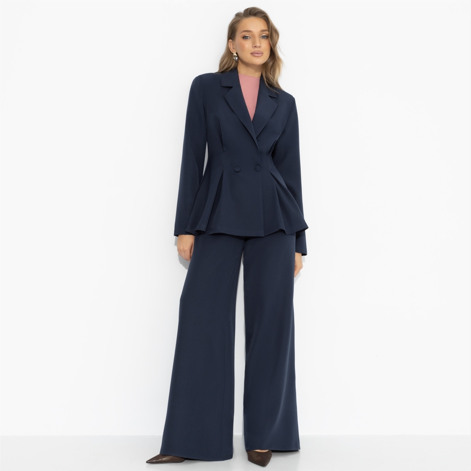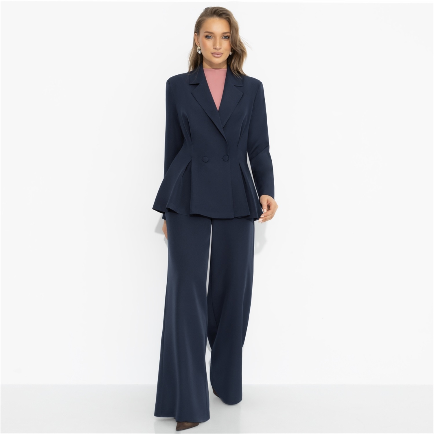 Твоя стихия – ночь перед штормом. Глубокий синий, как небо перед грозой: спокойный снаружи, мощный внутри. В этом оттенке жакет с акцентом на талии выглядит ещё выразительнее, а широкие брюки создают плавную, уверенную линию движения. Цвет не отвлекает – он концентрирует внимание. В тебе есть все, чтобы покорить любого: глубина, интеллект и скрытая сила. Комментарии к товару