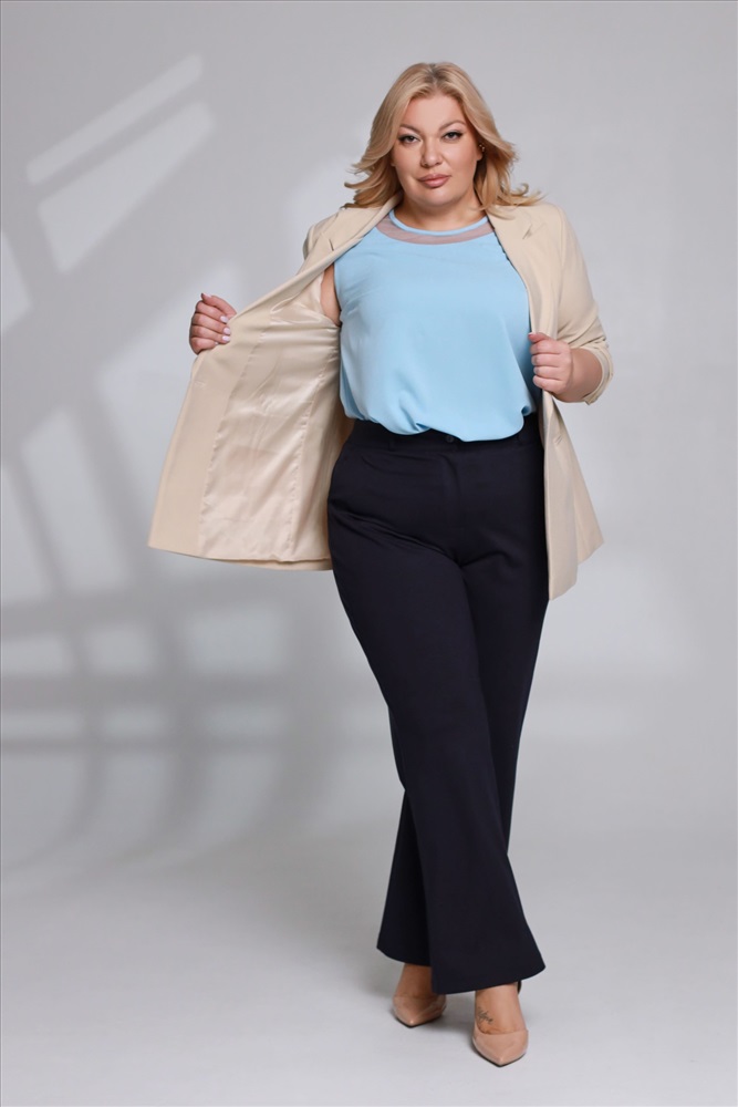 Утепленные брюки прямого силуэта, выполненные из мягкой плотной ткани с добавлением стрейчи, прекрасно подойдёт для холодной погоды. Брюки отлично сидят за счет эластичной резинки на поясе. Модель с комфортной высотой линии талии не сковывает движений. Расклешенные книзу брючины со стрелками визуально стройнят и зрительно вытягивают силуэт. Боковые карманы добавляют практичности. Брюки застегиваются спереди на скрытую молнию и пуговицу. Прекрасно подойдут для комбинирования с водолазками, свитерами, блузками и рубашками. Эти модные брюки станут идеальным вариантом для создания стильного образа.