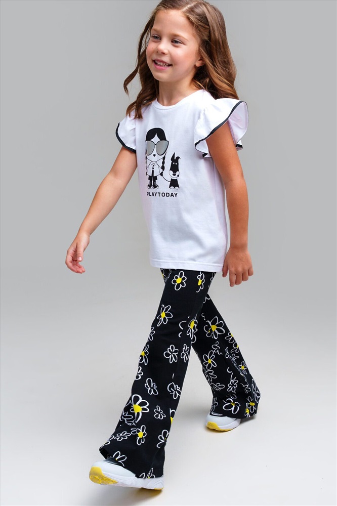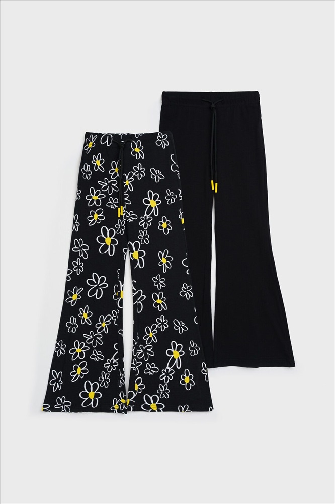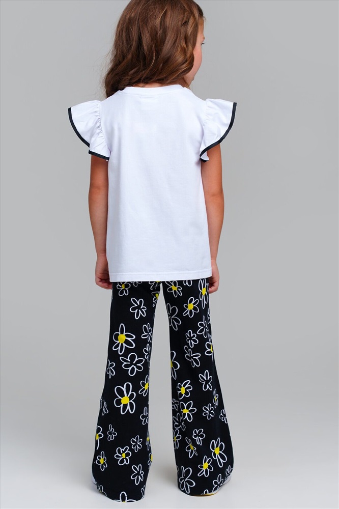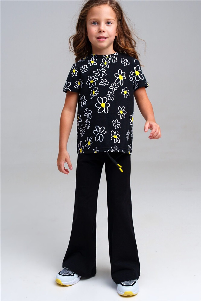 ID товара: 1121860 Состав: 95% Хлопок, 5% Эластан Сезон: Весна/Лето Длина: Полная Фасон: Клеш Вид застежки: Шнурок Рисунок: цветочный Декоративные элементы: Принт Основная ткань: Хлопок Стиль: Повседневный Страна бренда: Германия Страна производства: Китай Набор детских брюк для девочки. Комплект брюк из качественного и приятного на ощупь трикотажа джерси. Штаны на резинке со шнурком. Высокое содержание хлопка. Благодаря наличию эластана в составе ткани изделие держит форму и меньше мнется. Модель выполнена из качественного и приятного на ощупь трикотажа. Комментарии к товару