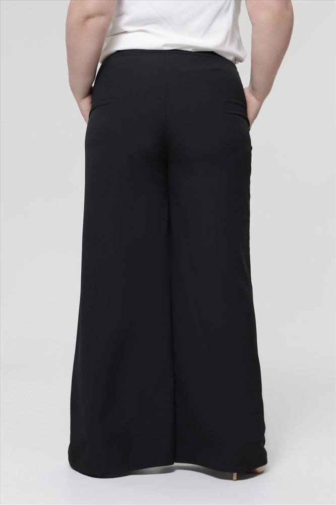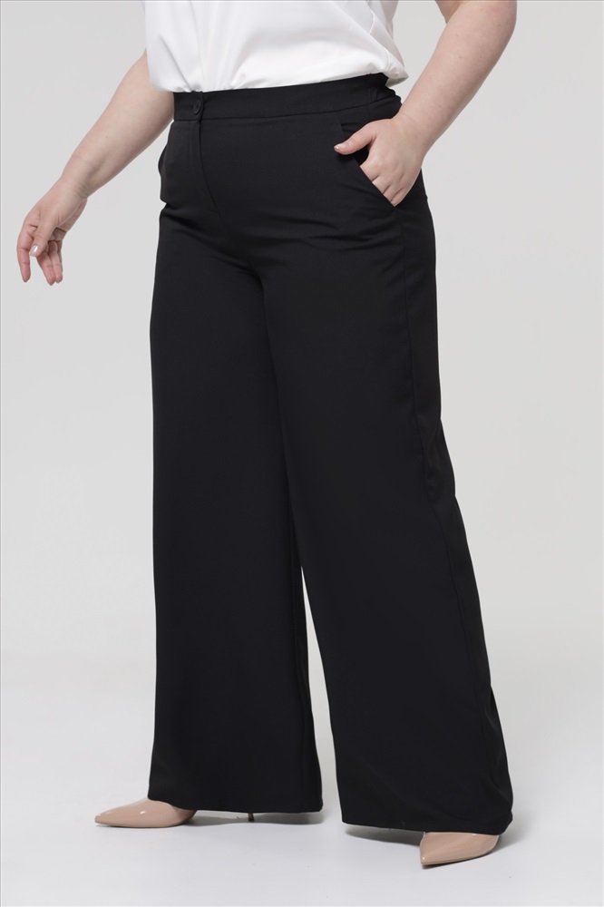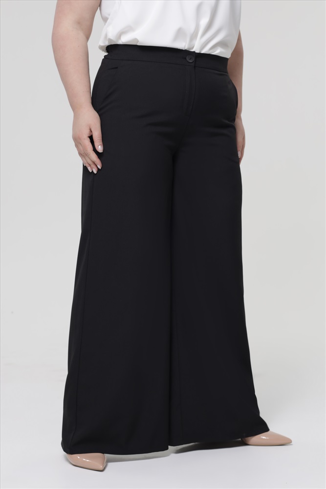 Элегантные брюки прямого силуэта, выполненные из мягкой ткани с добавлением стрейчи. Брюки отлично сидят за счет эластичной резинки на поясе. Модель с комфортной высотой линии талии не сковывает движений. Расклешенные книзу брючины визуально стройнят и зрительно вытягивают силуэт. Боковые карманы добавляют практичности. Брюки застегиваются спереди на скрытую молнию и пуговицу. Прекрасно подойдут для комбинирования с жакетами водолазками, свитерами, блузками и рубашками. Эти модные брюки станут идеальным вариантом для создания стильного образа.