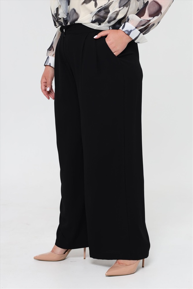 Брюки палаццо с защипами черные