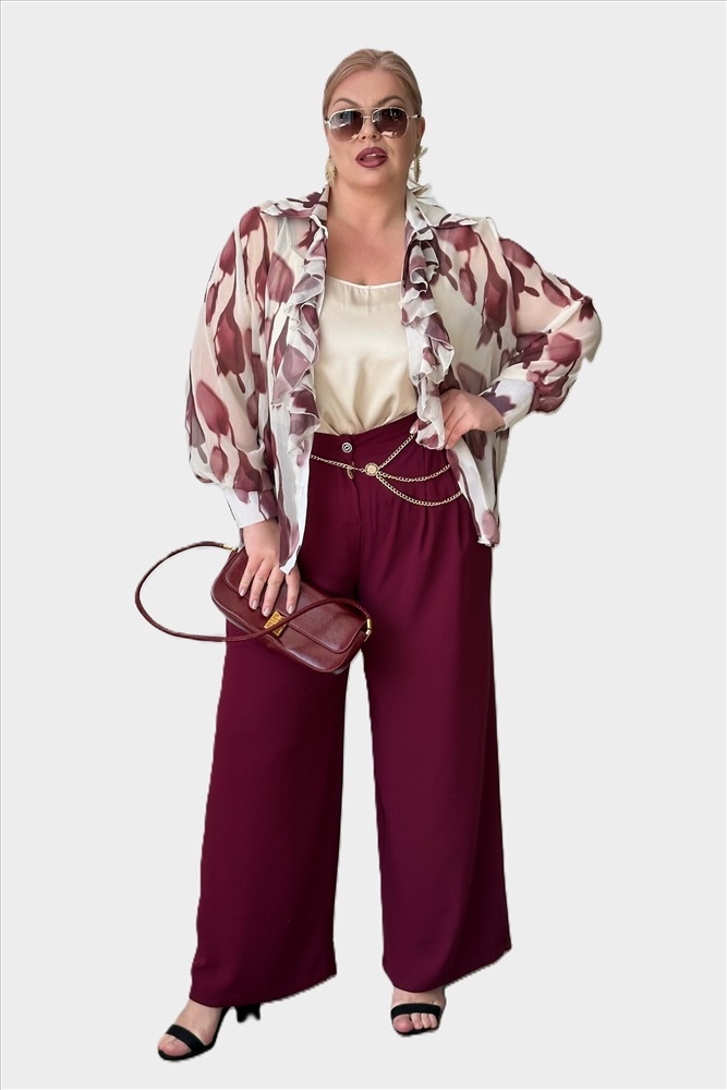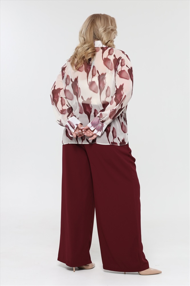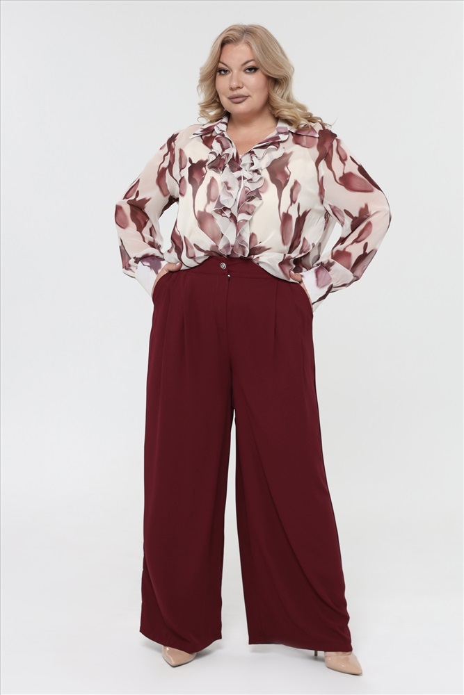 Брюки прямого силуэта отлично сидят за счет эластичной резинки на поясе. Модель с комфортной высокой линией талии не сковывает движений. Расклешенные брючины со стрелками визуально стройнят и зрительно вытягивают силуэт. Боковые карманы добавляют практичности. Брюки застёгиваются спереди на скрытую молнию и пуговицу. Модель прекрасно подойдёт для комбинирования с водолазками, свитерами, блузками и рубашками. Эти модные брюки станут идеальным вариантом для создания стильного образа.