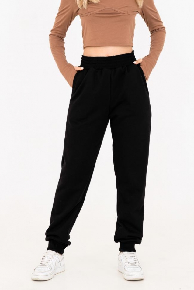 Брюки-джоггеры изготовлены из шикарной ткани интерсофт с начёсом барашек. Плотность 320 гр. В отличие от ткани футер 3-нитка начёс не осыпается и не пиллингуется. Ткань плотная, упругая, мягкая, одна из толстых и тёплых видов трикотажа в своей группе. Начёс ткани обработан специально в виде барашка. Очень красивый и приятный к телу. Ткань двухсторонняя - интерлок пенье плюс флис. Джоггеры с высокой талией, прямого свободного кроя, слегка зауженные к низу. Имеют внутренние карманы. Пояс обработан на поясной машине, поэтому резинка не скручивается при эксплуатации. Нижняя часть брюк и пояс изготовлены из очень качественной резинки-кашкорсе в цвет основной ткани. В измерениях обхвата талии указан размер резинки, которая без проблем растягивается до стандартных значений фигуры. Носите с удовольствием! В комплект к брюкам можно приобрести толстовку 21562; продается отдельно