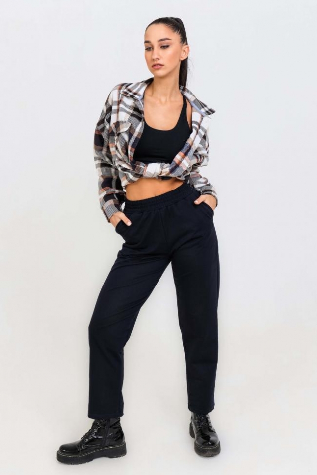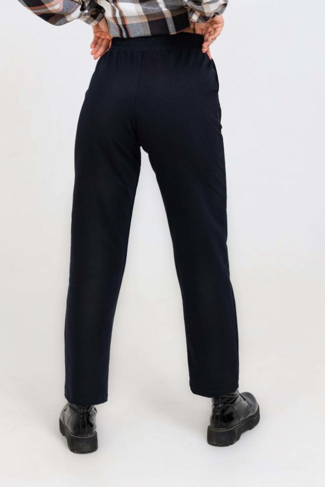 Женские брюки в классическом стиле с высокой посадкой. Благодаря наличию в составе небольшого количества полиэстера и лайкры, брюки не деформируются в процессе эксплуатации. Очень хорошо подчёркивают фигуру и добавляют стройности и женственности. Брюки подходят для любого мероприятия: в школу, в офис, на работу, торжество. Деформирование резинки в поясе исключено, так как она прошита на поясной машине. Ширина пояса 5 см. Карманы с отрезным бочком.