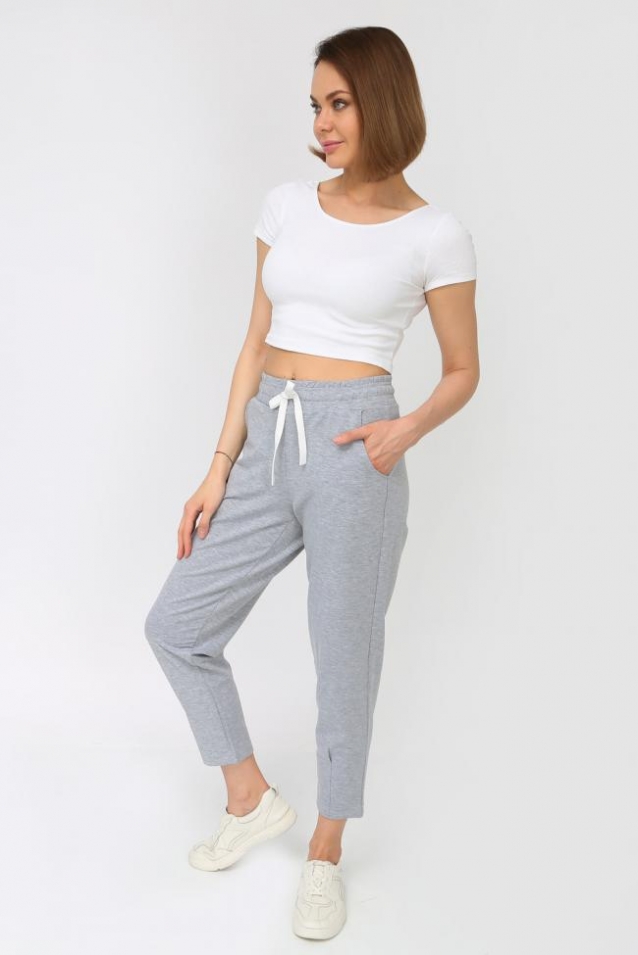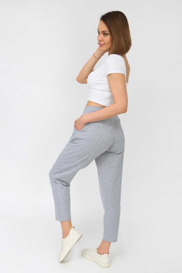 Женские брюки прямого кроя, пояс на резинке, внизу декоративный шов, карман с отрезным бочком. Отлично подойдут для женщин и девушек как домашние брюки, для занятий спортом, для прогулок.