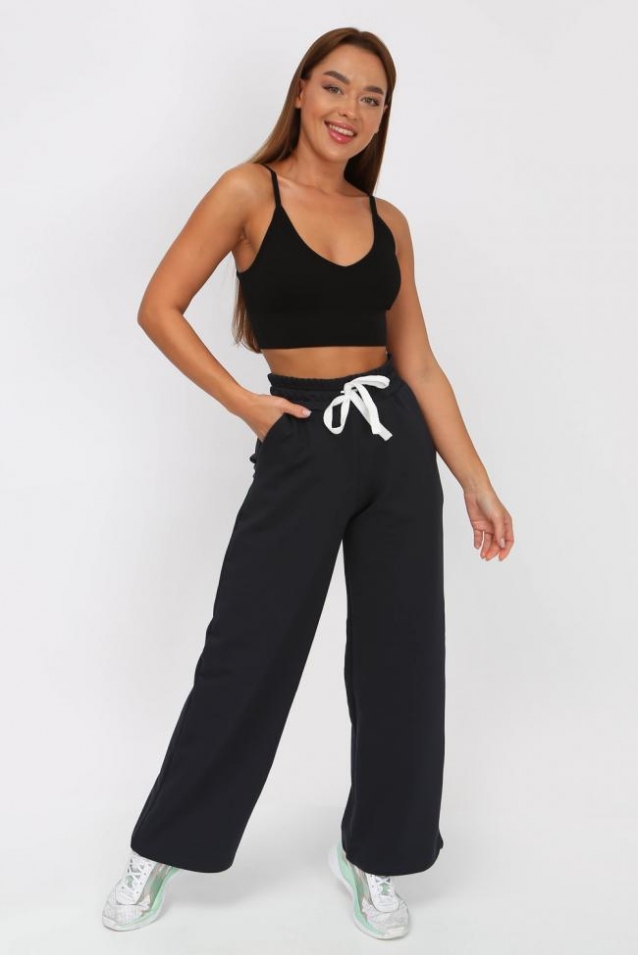 Разнообразь свой гардероб модными брюками-палаццо с поясом на резинке со шнурком. Брюки свободные, с завышенной талией, по бокам карманы с отрезным бочком. Подойдут для повседневной носки, для танцев и прогулок. Ткань 2-х нитка компакт пенье. Рост модели на фото 160 см, размер 44