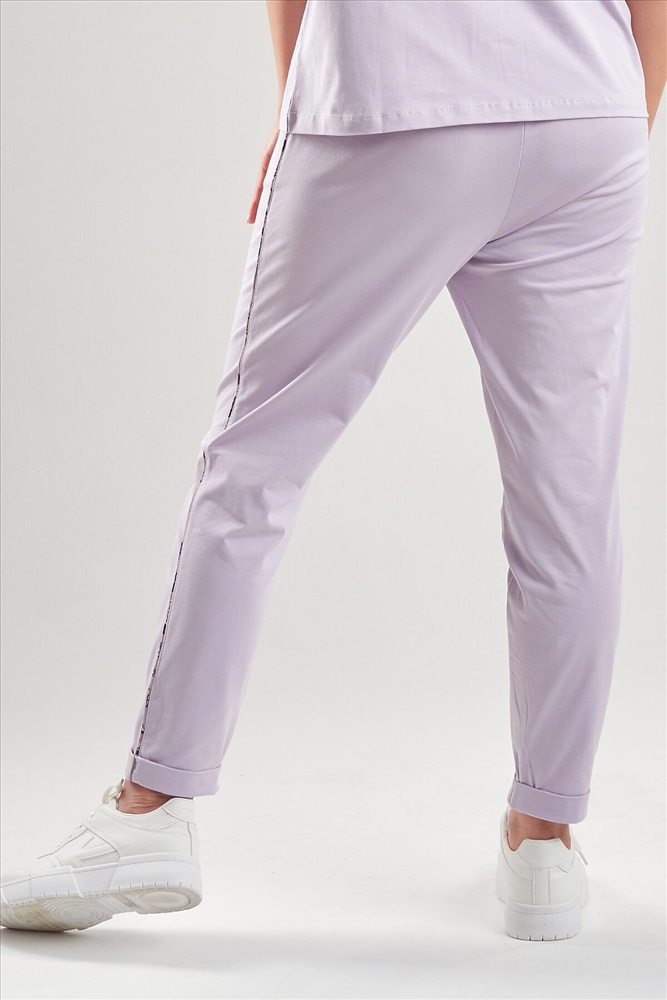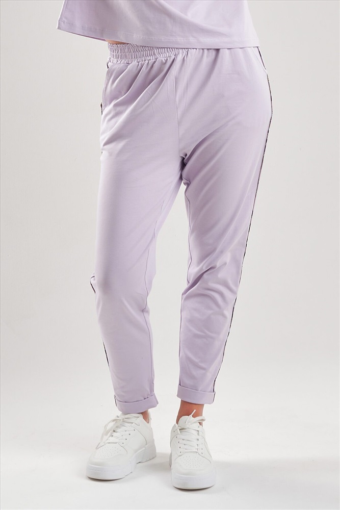 ID товара: 1136614 Состав: 92% Хлопок; 8% Лайкра Сезон: Весна/Лето Длина: Полная Фасон: Зауженные Основная ткань: Хлопок Стиль: Спортивный Вид ткани: Кулирка с лайкрой Страна бренда: Россия Страна производства: Россия Брюки женские с контрастными лампасами по бокам. Яркие модные брюки м эластичным поясом, удобные боковые карманы. Модель выполнена из премиального кулирного гладья с добавлением лайкры. Комментарии к товару