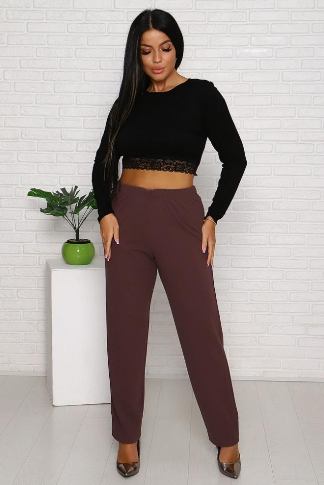 Модель прямого свободного силуэта , пояс на резинке, из плотной трикотажной стрейчевой ткани креп. Ткань приятна к телу, не мнётся, крой брюк очень удобен в носке, в них вы будете чувствовать себя комфортно и стильно.