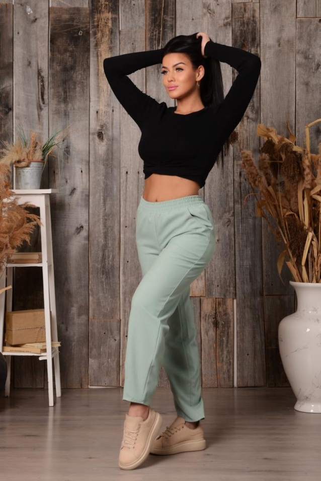 Модные женские брюки-бананы из смесовой ткани с содержанием льна. Свободные, зауженные к низу с помощью вытачек, широкий пояс на резинке, по бокам внутренние карманы. Длина брюк до щиколотки (рост модели 165 см). Очень комфортны и удобны в носке, не мнутся, отлично смотрятся со спортивной обувью. Обхват резинки в растянутом виде: 46р - 98см, 48р - 100см, 50р - 102см, 52р - 104см, 54р - 106см, 56р - 108см