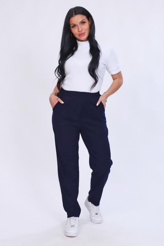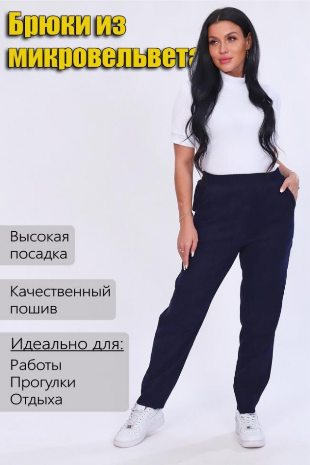 Удобные повседневные брюки из микровельвета на все случаи жизни станут приятным дополнением к вашему осеннему гардеробу. Высокая посадка и широкая резинка на поясе обеспечит комфорт при носке. Брюки не мнутся, хорошо смотрятся и со спортивной обувью, и с демисезонными полусапожками. По бокам внутренние карманы, полноценная длина, обхват талии в размерной сетке соответствует длине резинки в растянутом виде.
