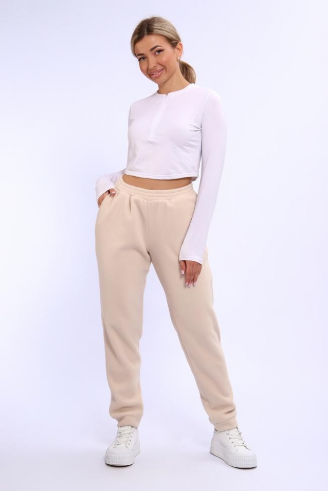 Очень удобные, теплые и комфортные брюки из флиса. Флис - синтетическая утепляющая ткань, производимая из полиэстеровых волокон, по своим свойствам максимально приближена к натуральной шерсти. Легкие по весу и в то же время очень теплые, брюки из флиса идеально подойдут для прогулок в прохладную погоду, и как домашняя одежда в межсезонный период. Брюки свободного кроя, слегка зауженные к низу, средняя посадка, пояс на резинке обеспечивает комфорт при носке. Снизу притачан манжет, по бокам внутренние карманы. В замерах обхват талии соответствует длине резинки в растянутом виде.