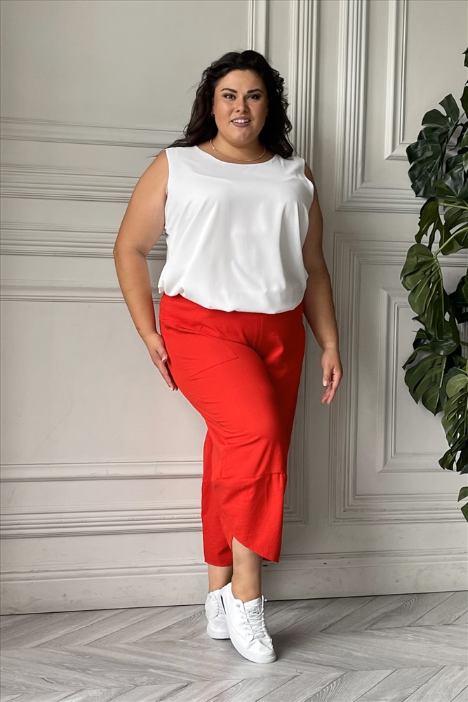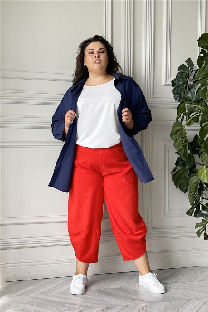 Элегантные брюки-султанка из мягкой струящейся ткани с крэш эффектом. Модель отлично сидит за счет высокой посадки и комфортной резинки на поясе. Накладные карманы по бокам добавляют практичности и функциональности. Модель с комфортной посадкой не сковывает движений. Зауженные книзу брючины, оформленные по бокам внахлест, визуально стройнят и зрительно вытягивают ноги. Комфортная модель - отличная база для создания разнообразных образов. Их могут смело носить как юные, спортивные барышни, так и изысканные дамы в возрасте. Правильно подобрав аксессуары, можно создавать смелые, утонченно женственные, строгие, деловые образы.
