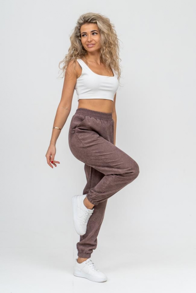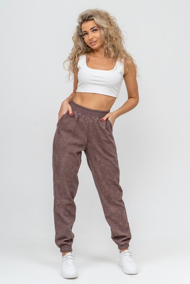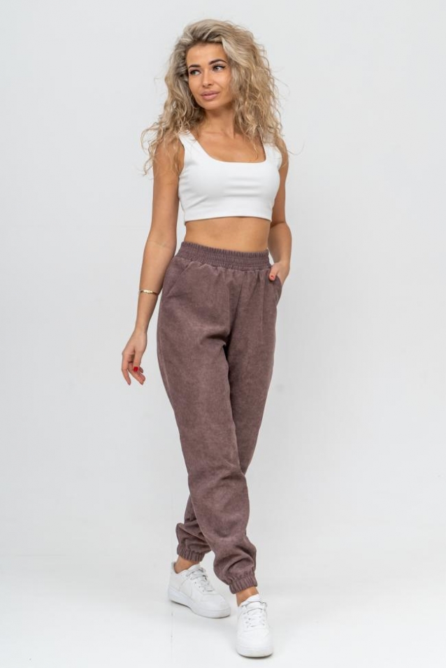 Женские стильные брюки - бананы выполнены из качественного вельвета, что увеличивает долговечность изделия, придавая ему прочность. Вельвет практичен, прост в уходе и использовании. Обладает высокой износоустойчивостью, прочностью, не деформируется и не вытягивается, приятен к телу, не мнётся и не выцветает. Материал гигроскопичен, хорошо пропускает воздух и сохраняет тепло. Высокая посадка, вместительные боковые карманы, удобный и качественно обработанный на специальной машине пояс - резинка позволит Вам чувствовать себя максимально комфортно. Такой фасон брюк формирует выразительный женственный силуэт, скрывает мелкие недостатки фигуры и гармонизирует пропорции. Всё это образует идеальное решение для лука на каждый день, проведённый вами дома, на работе, в школе и на отдыхе.