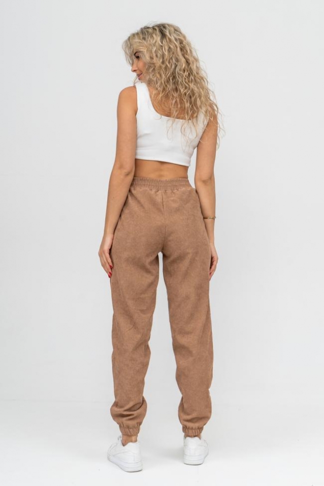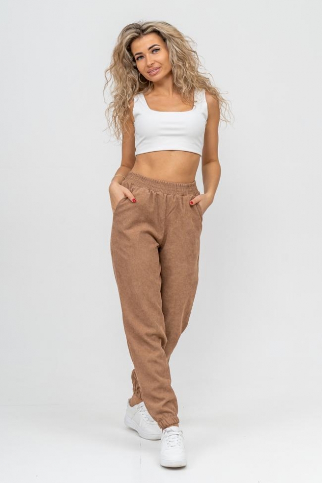 Женские стильные брюки - бананы выполнены из качественного вельвета, что увеличивает долговечность изделия, придавая ему прочность. Вельвет практичен, прост в уходе и использовании. Обладает высокой износоустойчивостью, прочностью, не деформируется и не вытягивается, приятен к телу, не мнётся и не выцветает. Материал гигроскопичен, хорошо пропускает воздух и сохраняет тепло. Высокая посадка, вместительные боковые карманы, удобный и качественно обработанный на специальной машине пояс - резинка позволит Вам чувствовать себя максимально комфортно. Такой фасон брюк формирует выразительный женственный силуэт, скрывает мелкие недостатки фигуры и гармонизирует пропорции. Всё это образует идеальное решение для лука на каждый день, проведённый вами дома, на работе, в школе и на отдыхе.
