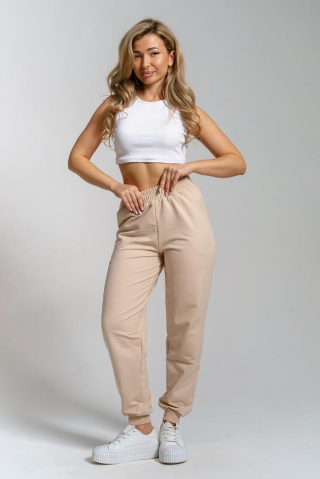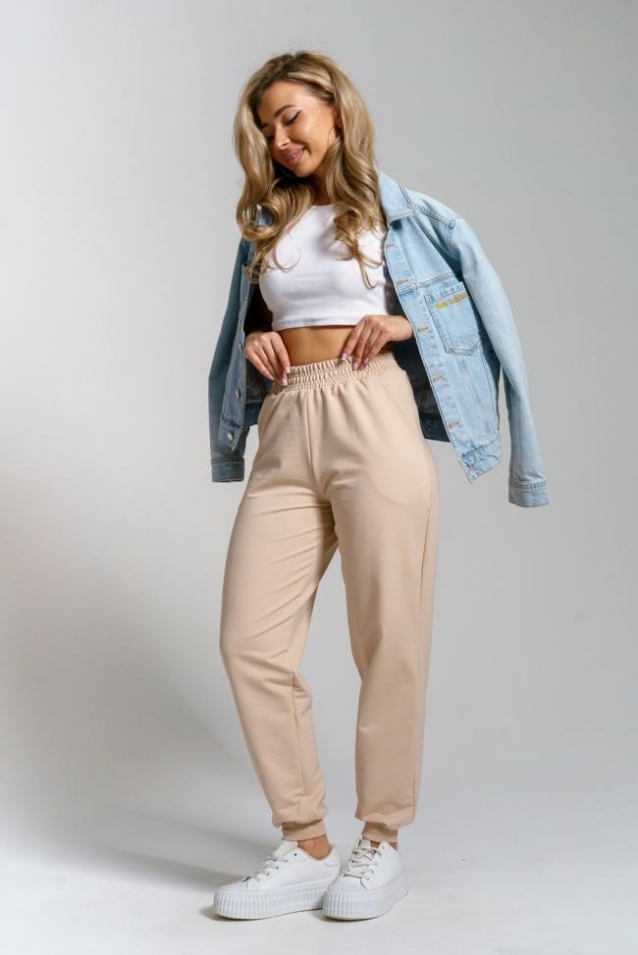 Женские брюки уже давно отличаются не только стилем и красотой, но и комфортом. Удобные не сковывающие движения элементы позволяют создавать модные образы. И это та самая модель - брюки джоггеры из футера 2-х нитки с высокой линией талии, которые идеально сядут на любой тип фигуры. Брюки такого плана заняли достойную позицию в гардеробе модниц благодаря своему оригинальному, и в то же время удобному крою. Внешний вид представляет собой свободные брюки сужающиеся к низу. Их отличительной чертой является пояс-резинка, обработанный на специализированной машине, и эластичные манжеты по низу брюк. Так же у модели имеются боковые карманы, в которых помещается всё самое необходимое. Удобство таких брюк неоспоримо, ведь резинка не пережимает тело и предоставляет свободу движений. В повседневной жизни за счёт своей универсальности брюки подойдут на любой повод - на работу, в школу, на прогулку, на тренировку... С брюками такого плана можно создавать спортивные образы и образы в направлении casual. Длинные майки, широкие свитера, другие элементы одежды oversize прекрасно дополнят эту модель. Не бойтесь добавлять аксессуары, они способны изменить образ до неузнаваемости и сделать брюки такого плана любимой вещью Вашего гардероба на любой случай жизни!
