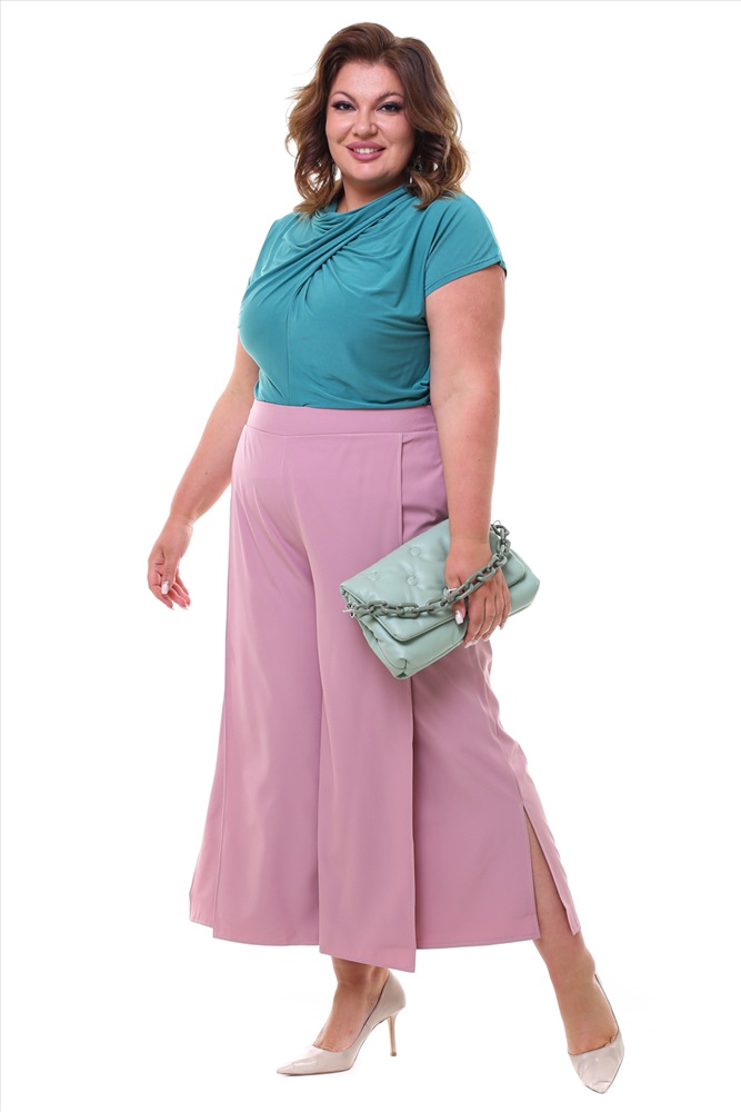 Брюки кюлоты с разрезами по бокам розовые