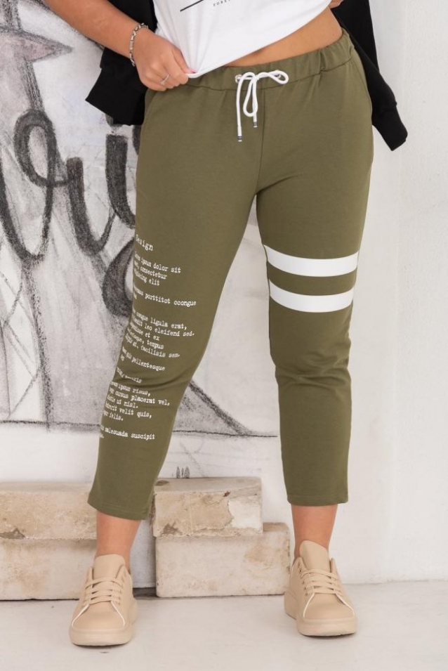 Джоггеры это брюки на резинке. В бедрах они свободны, а к низу сужаются. Сегодня их носят все модницы и ни один стильный женский образ не обходится без этого тренда. Брючки с прекрасной посадкой, пояс регулируется декоративным шнуром. Длина 3/4.